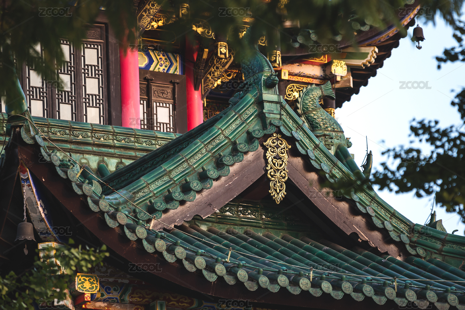 浙江舟山普陀山普济寺屋檐上的脊兽