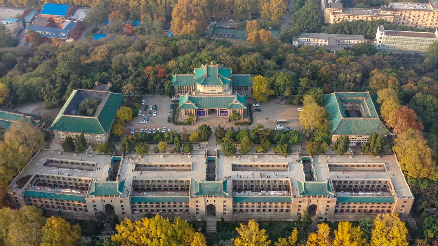 航拍中国武汉大学樱顶老斋舍老图书馆