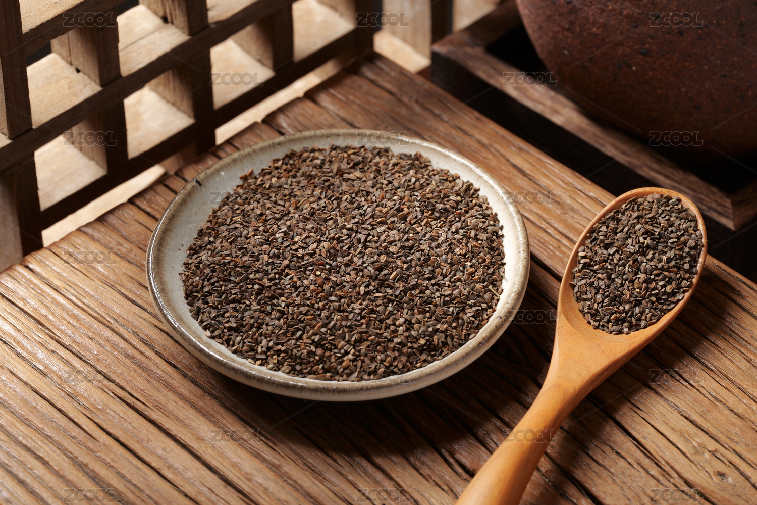 桌面上的盘子里的香气四溢的锡兰红茶茶叶粉