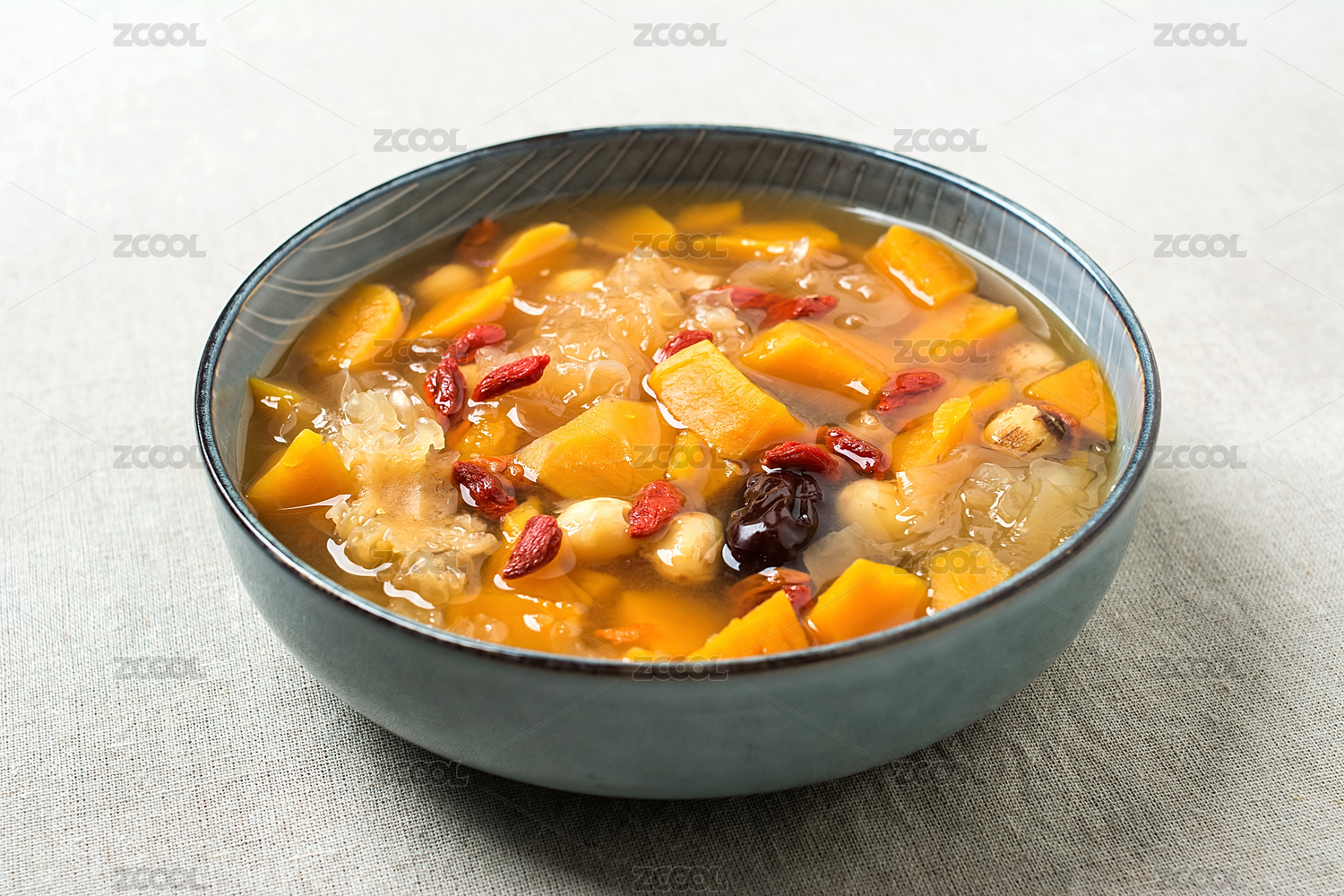 银耳莲子羹,羹汤,甜品,银耳,莲子,秋季,养生,桂花,麻布背景,桌布