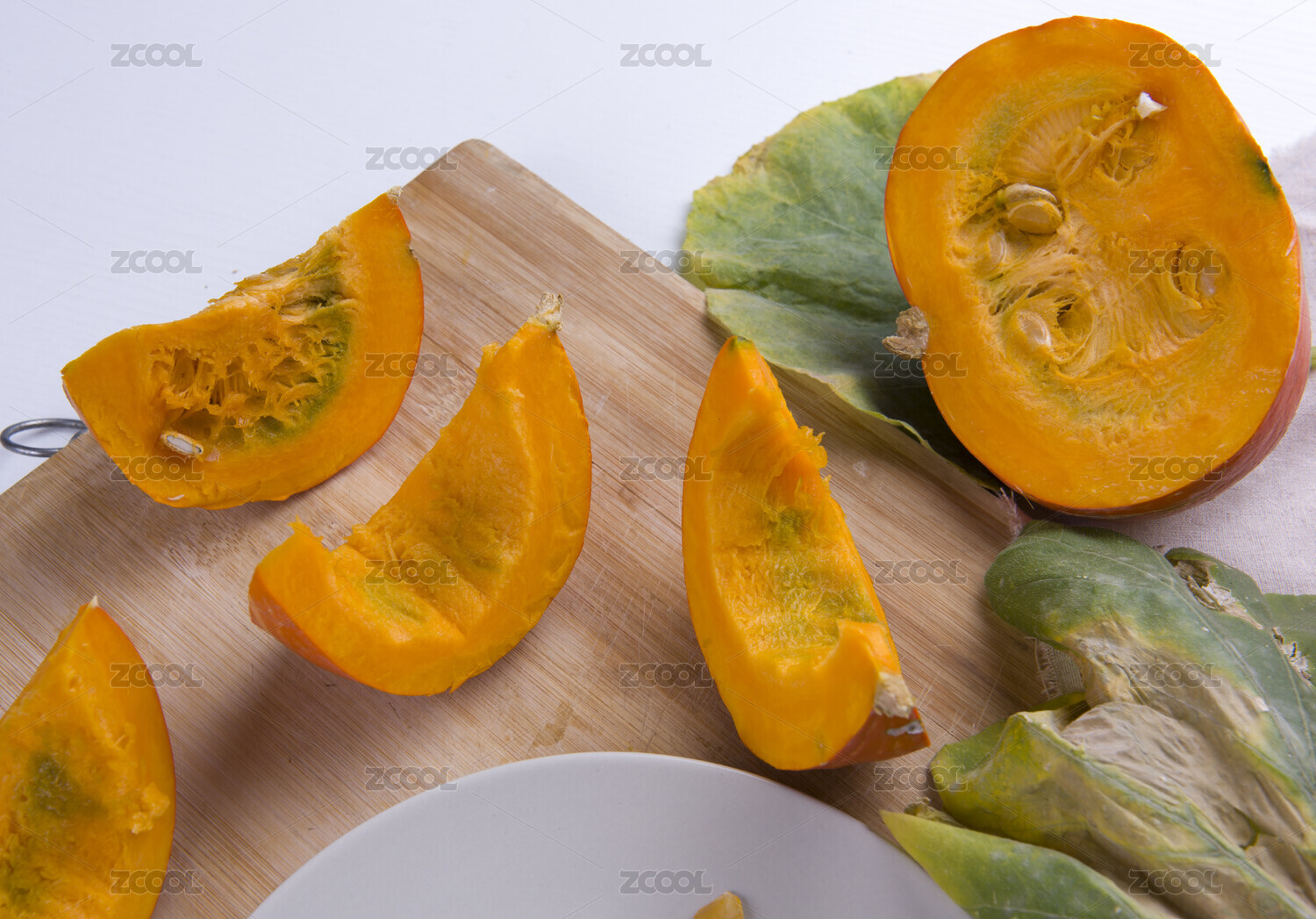 切开的南瓜,生的南瓜片,新鲜的食材