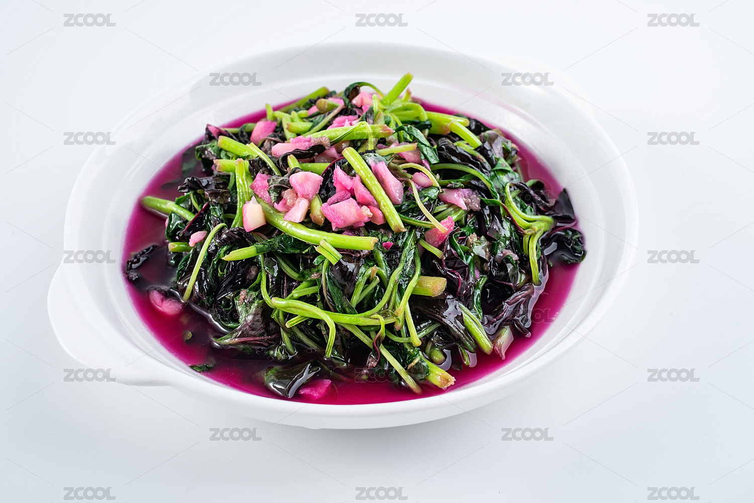 白背景一盘炒时蔬大蒜炒红苋菜