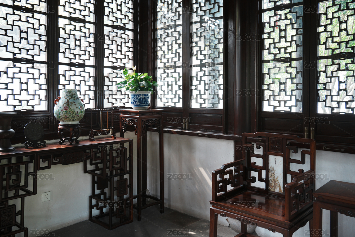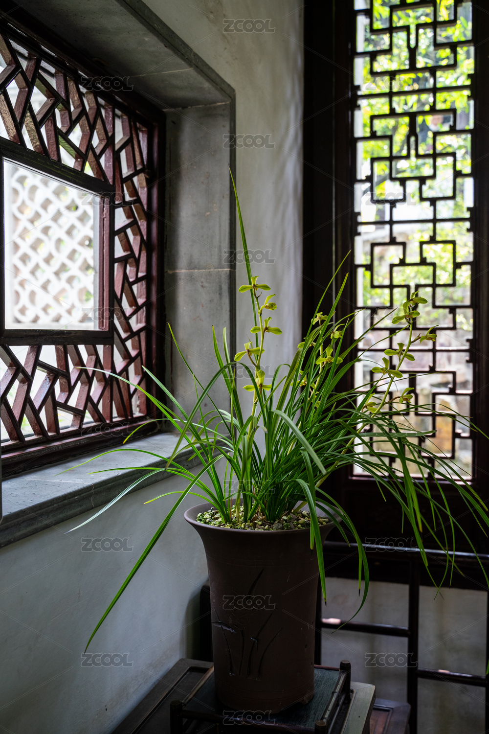 江南,园林,室内,家居,古典,花窗,盆景,竖构图,复古