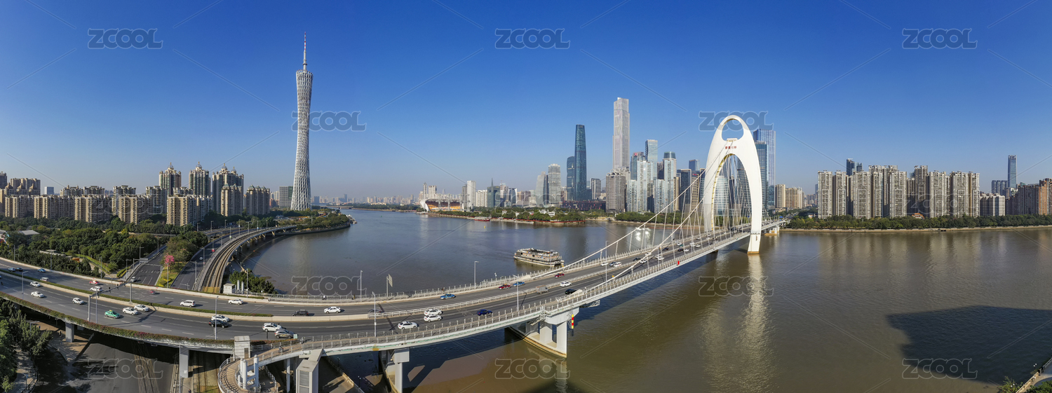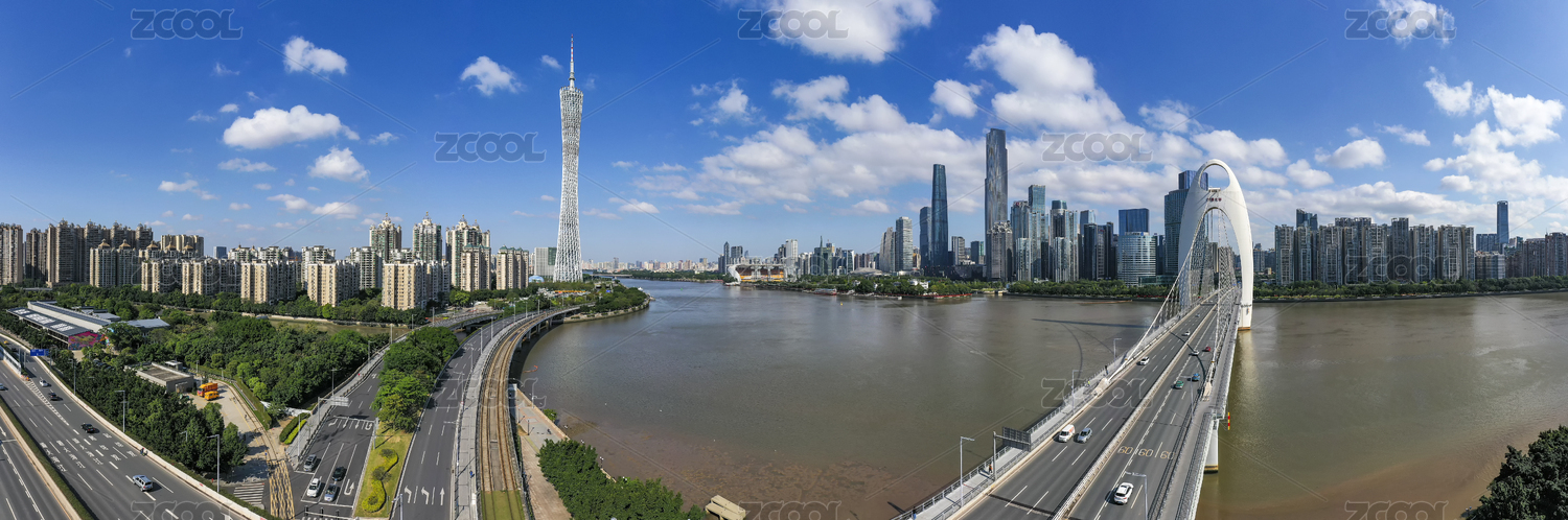 中国,广东,广州,广州市,珠江新城,CBD,商业中心,桥梁,蓝天,蓝色