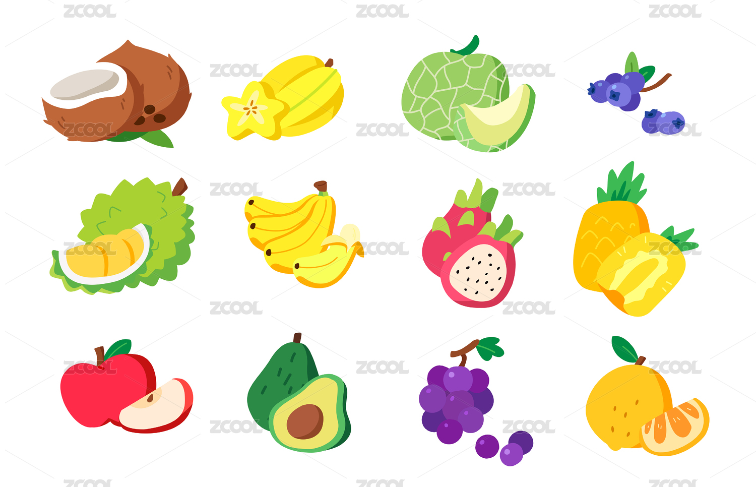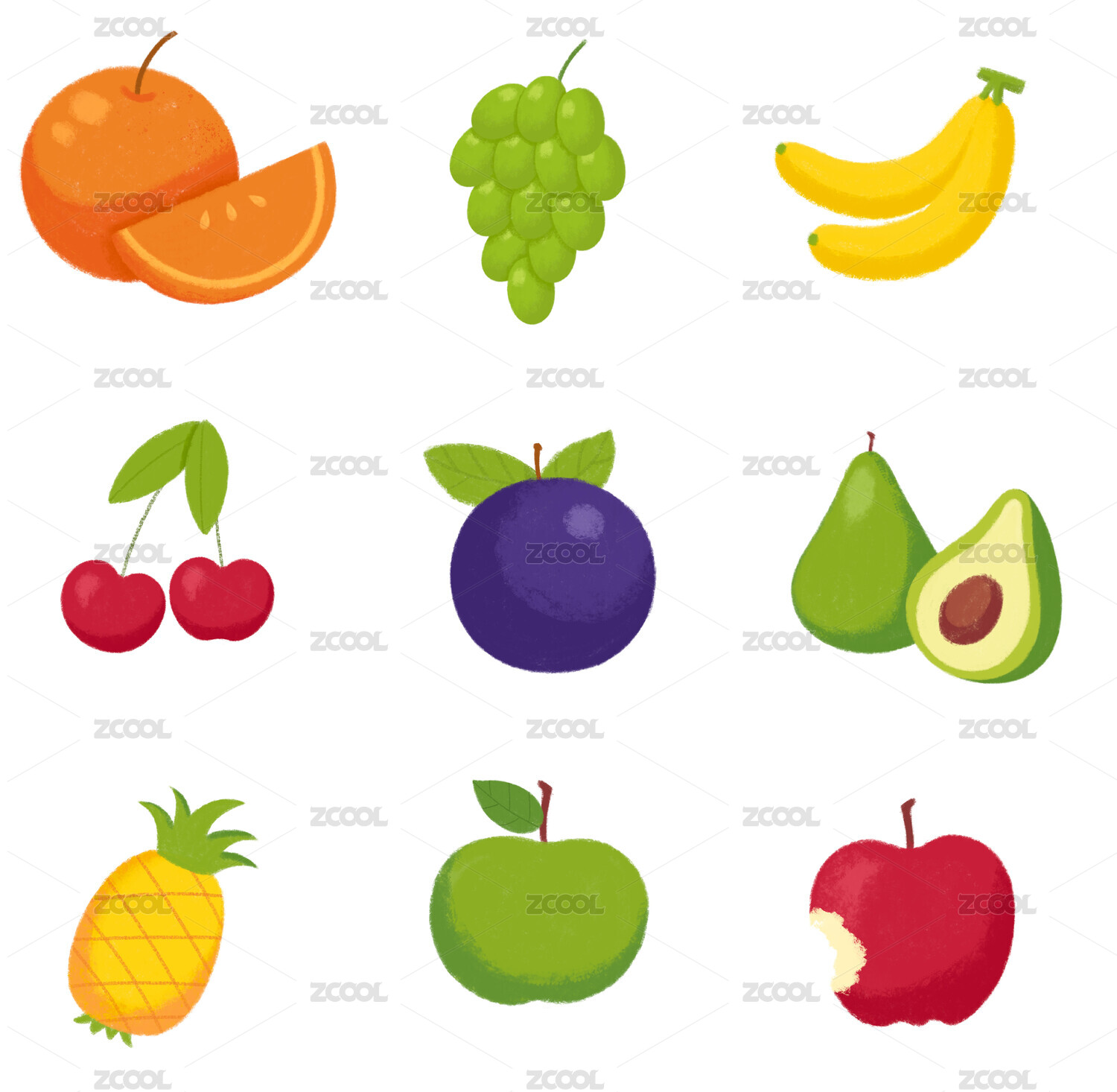 水果插画图案图形黑莓芒果葡萄菠萝苹果西瓜