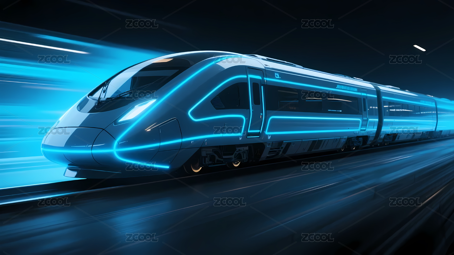 轨道高铁动车蓝色灯光三维图