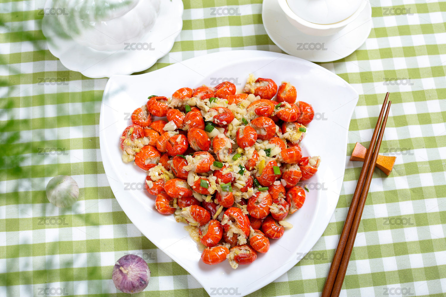 美味小吃爆炒蒜茸小龙虾尾