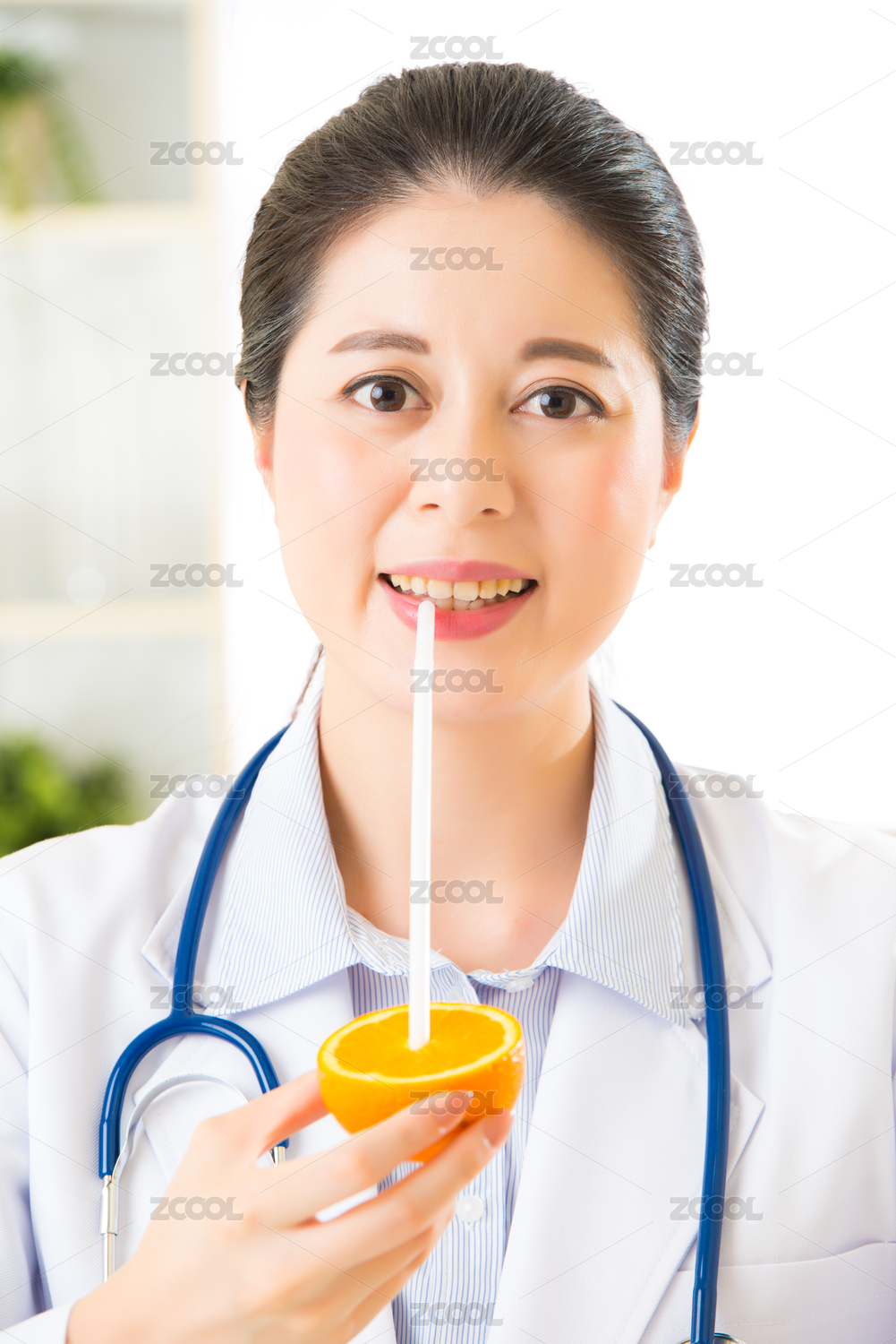 亚洲青年营养师饮用橙汁,健康饮食
