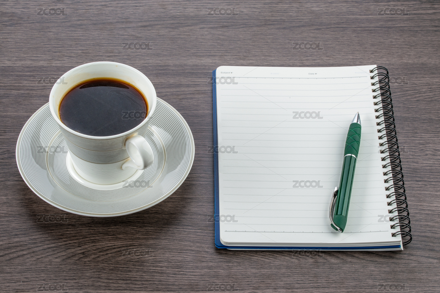 笔记本用钢笔和一杯咖啡,规划便条纸