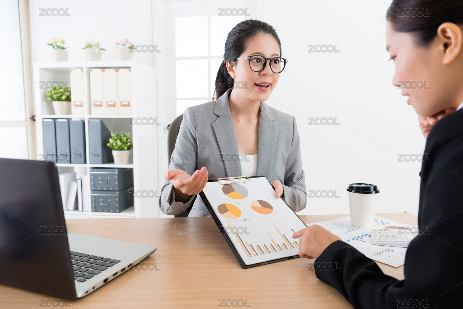 美丽的美少女上班族报告公司营销女老板分析,并讨论新的合作计划的情况下。