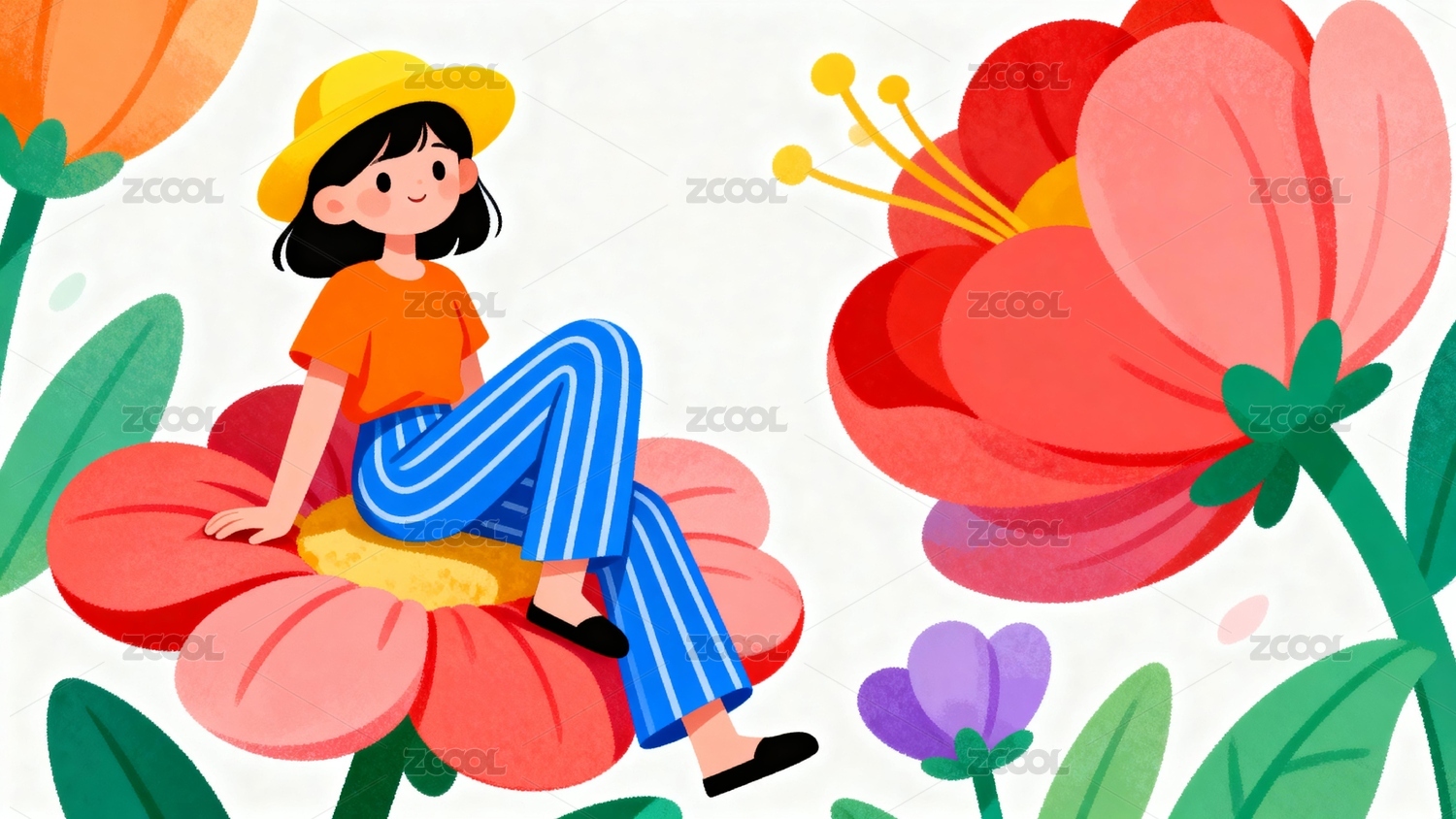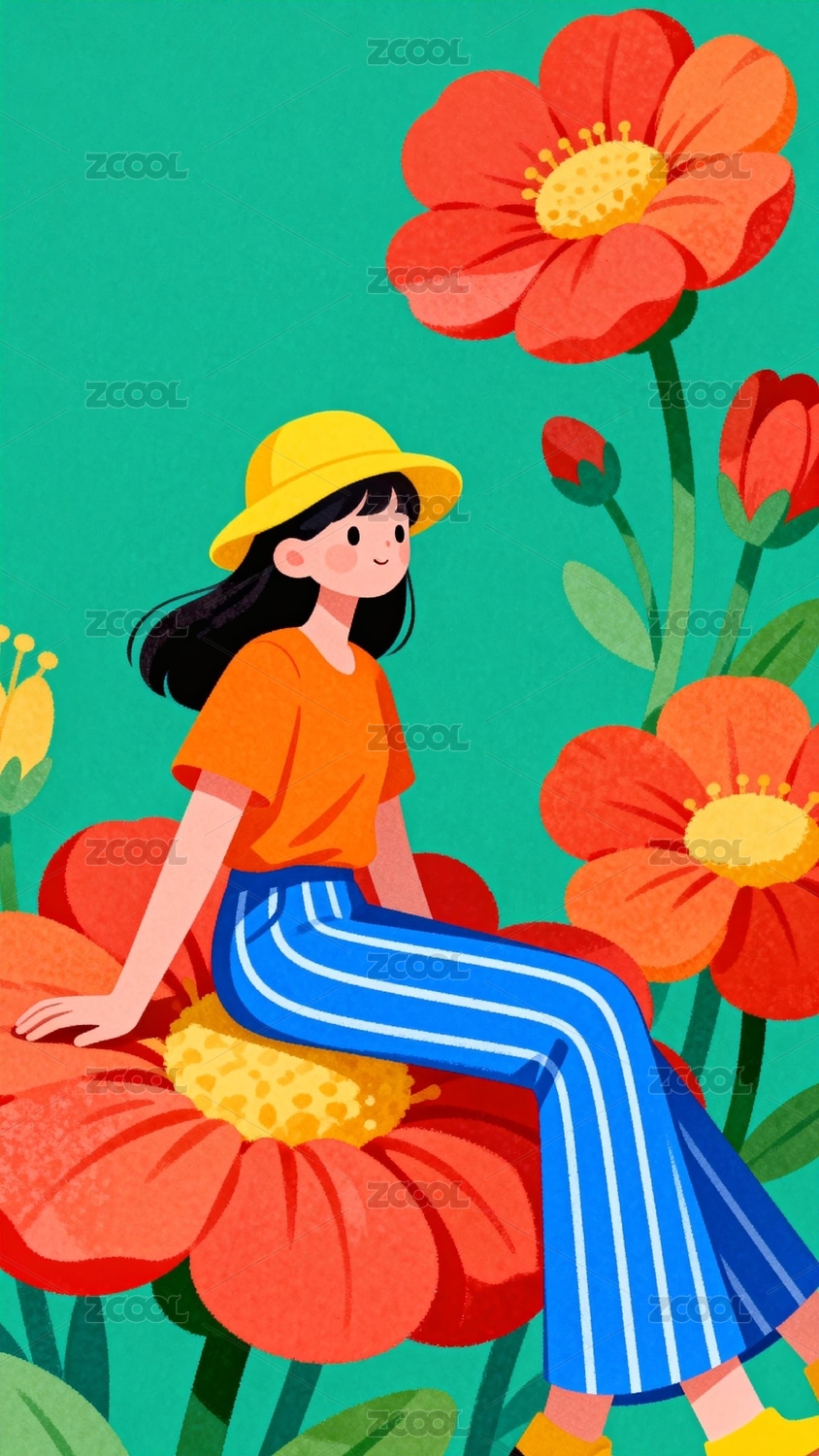 动漫,荷花,荷叶,可爱,快乐,绿色,女孩,清爽,盛夏,暑假
