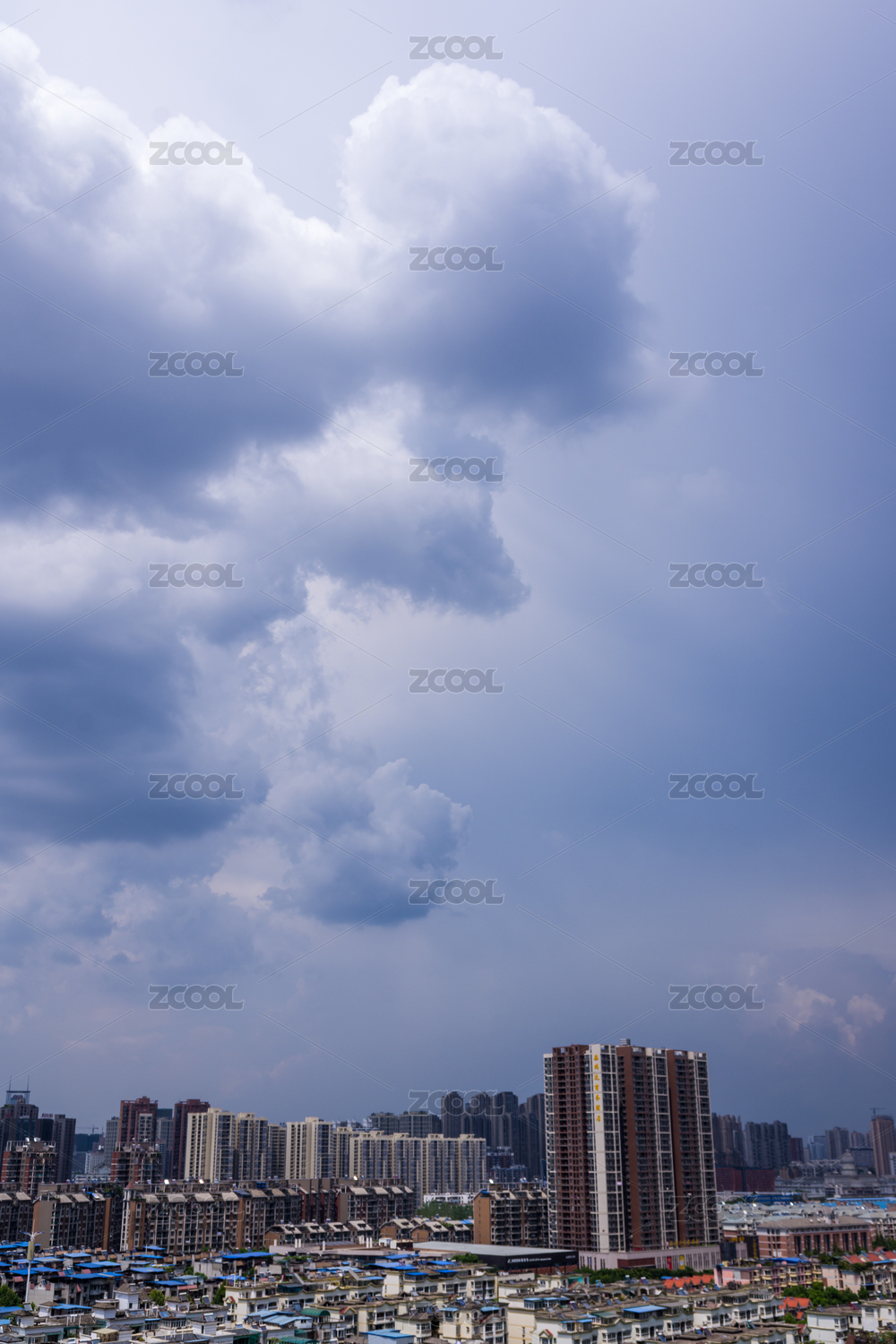 浓积云下的重庆城市高楼建筑