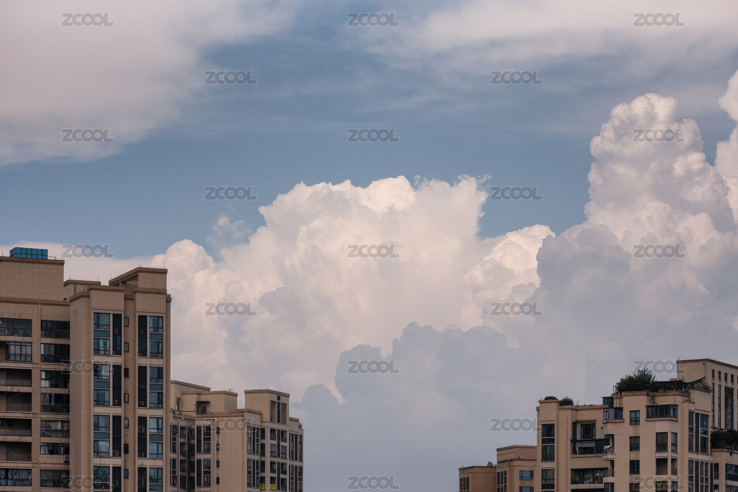 高楼与夏日天空中的云朵