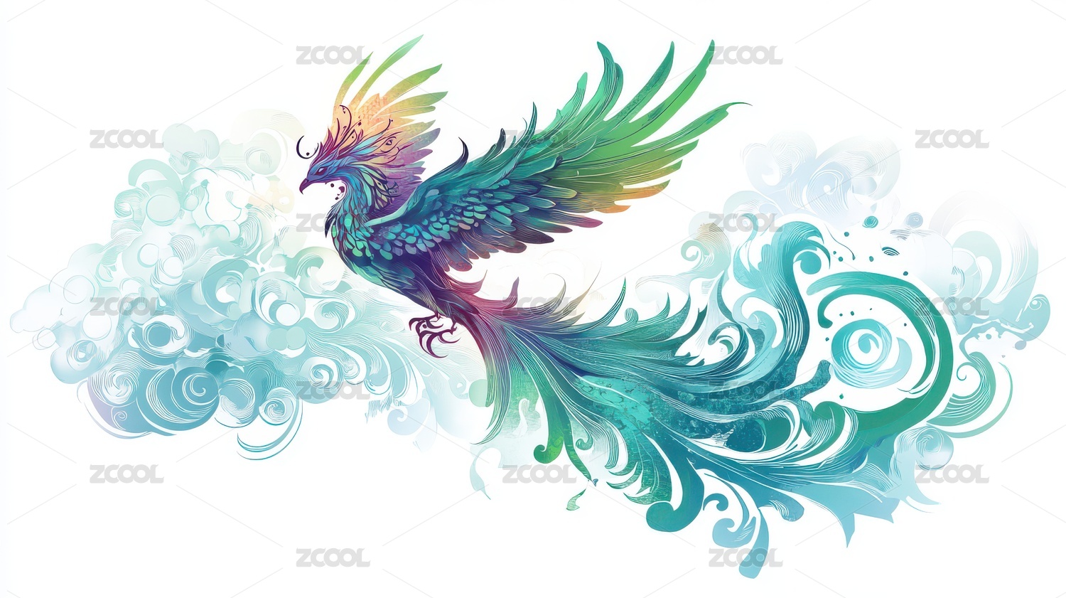 不死鸟,凤凰,插画,插图,凤,国潮,国风,神兽,鸾鸟,牡丹