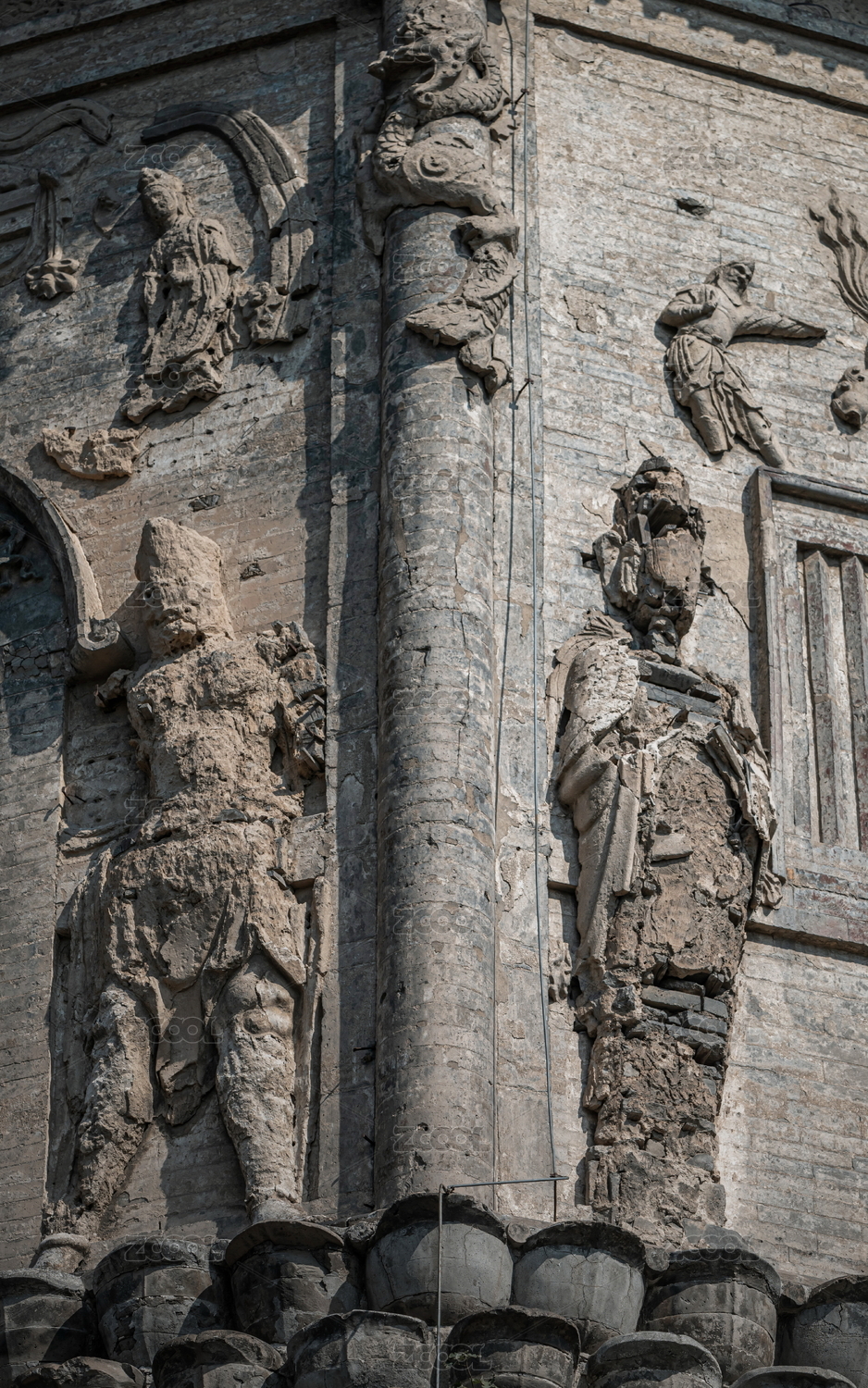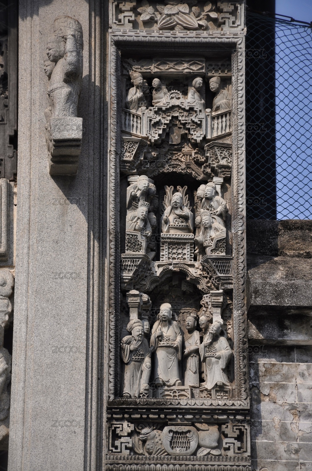中国广东广州陈家祠,精致雕刻的岭南风格建筑屋顶