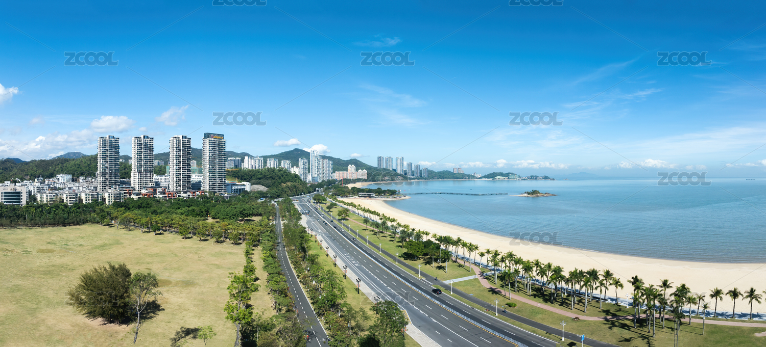 Clearwater Bay (Qingshui Bay) Panorama Aerial View, a Luxury Coastal Tourism Destination and Residential Area in Lingshui, Hainan Province, China