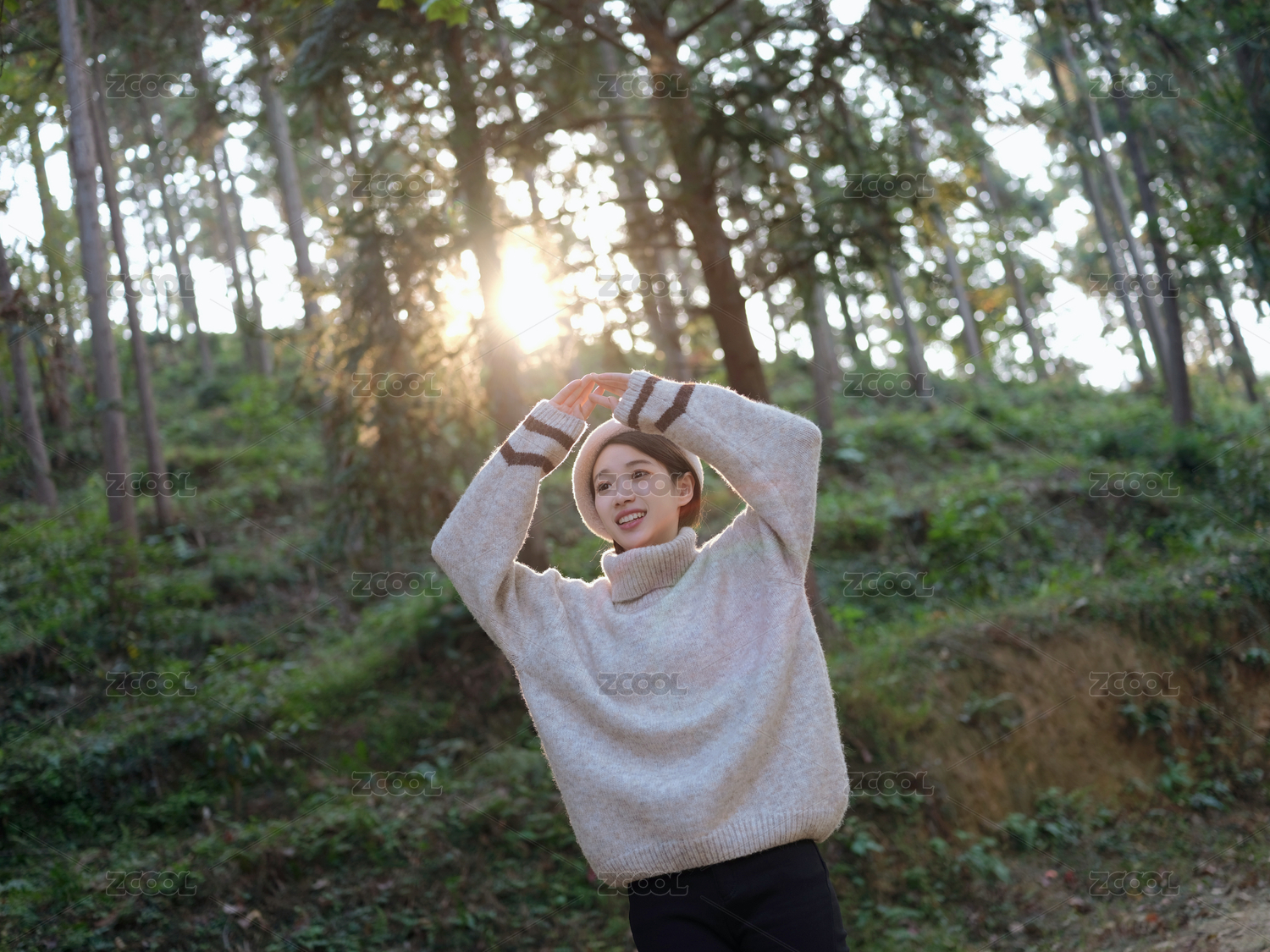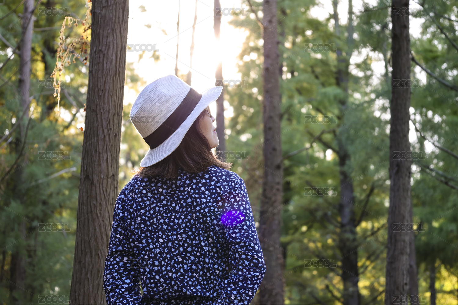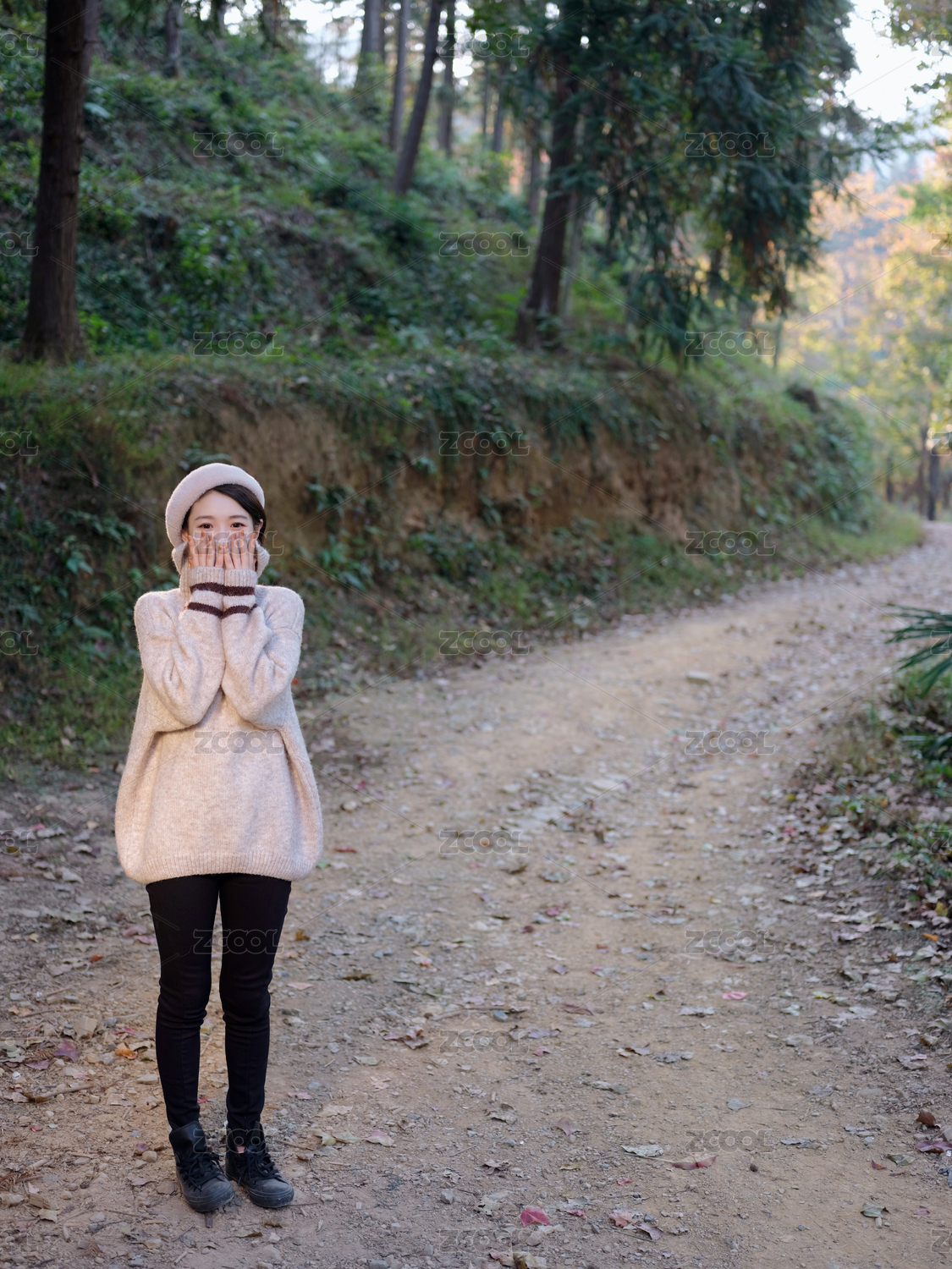 秋天,女性,女孩,人,一个人,户外,森林,湖边,湖水,树叶