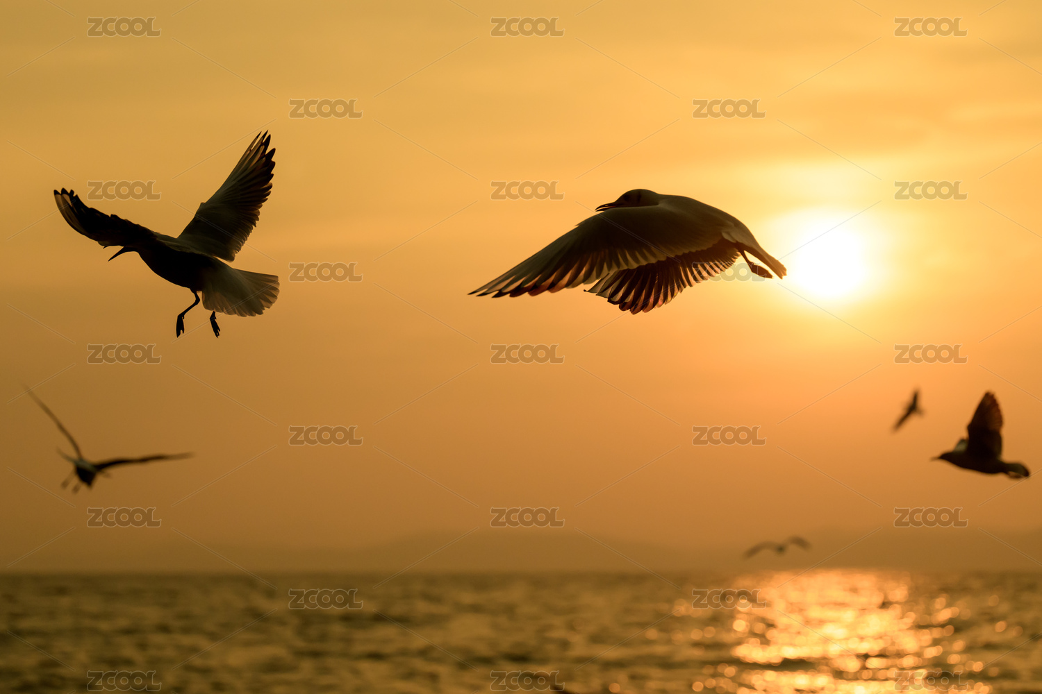 傍晚的滇池海洪湿地公园和西伯利亚红嘴鸥