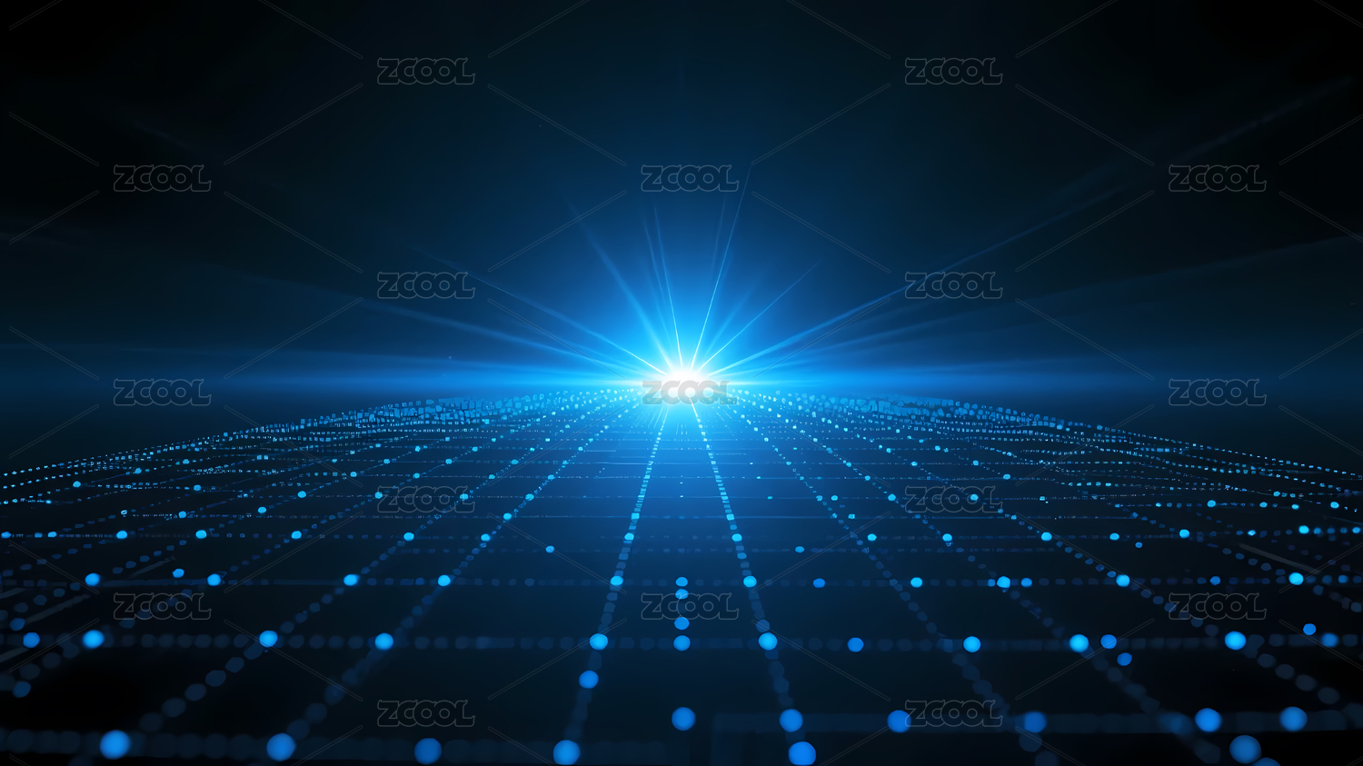 未来科技背景蓝色光点与光线交织的虚拟空间