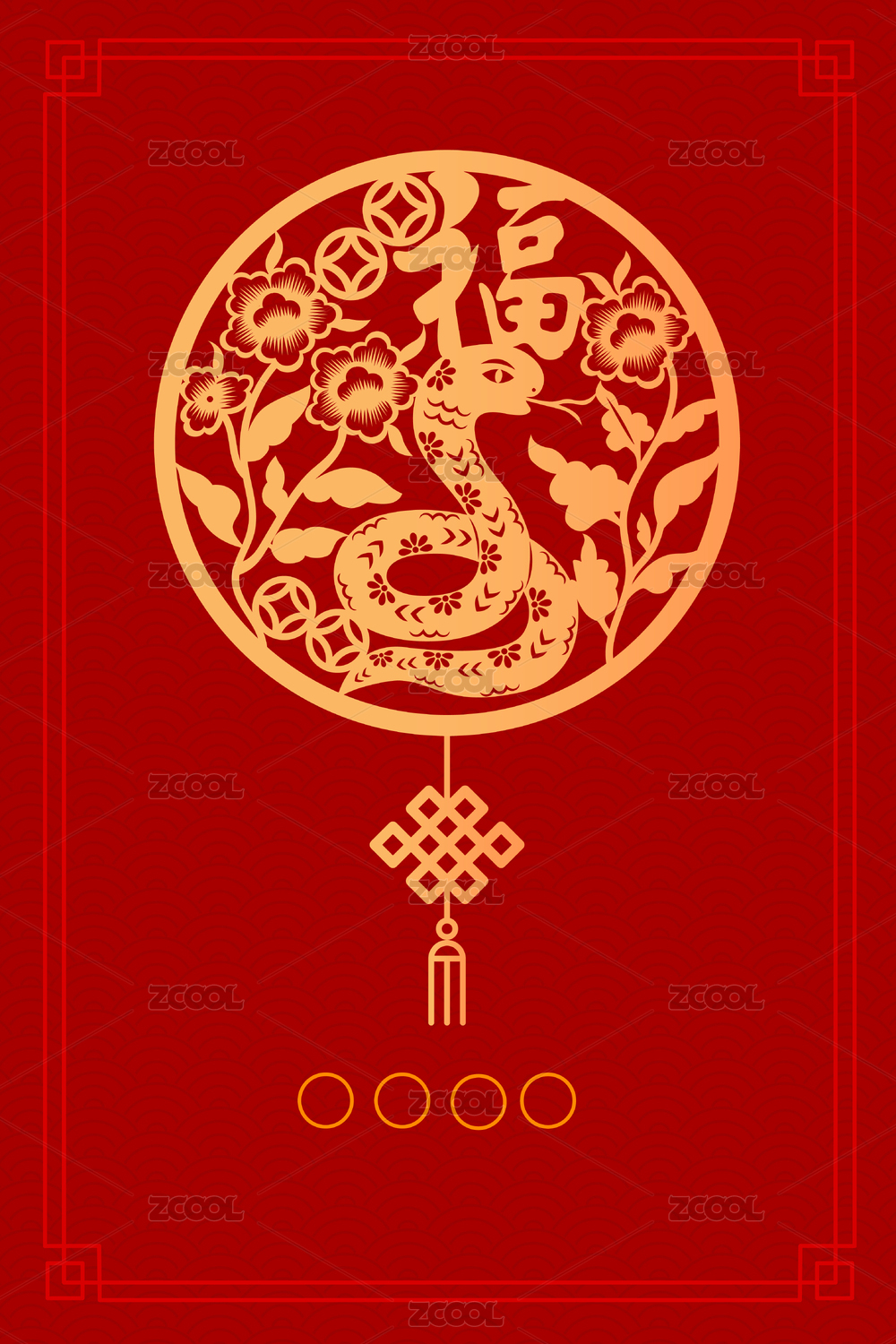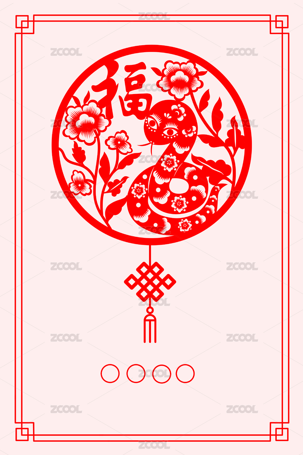 2025蛇年春节十二生肖巳蛇剪纸风格矢量