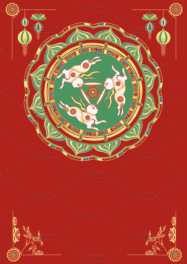 敦煌,插画,三兔共耳,纹样,红色,喜庆,兔子,中秋节,奔跑,动物