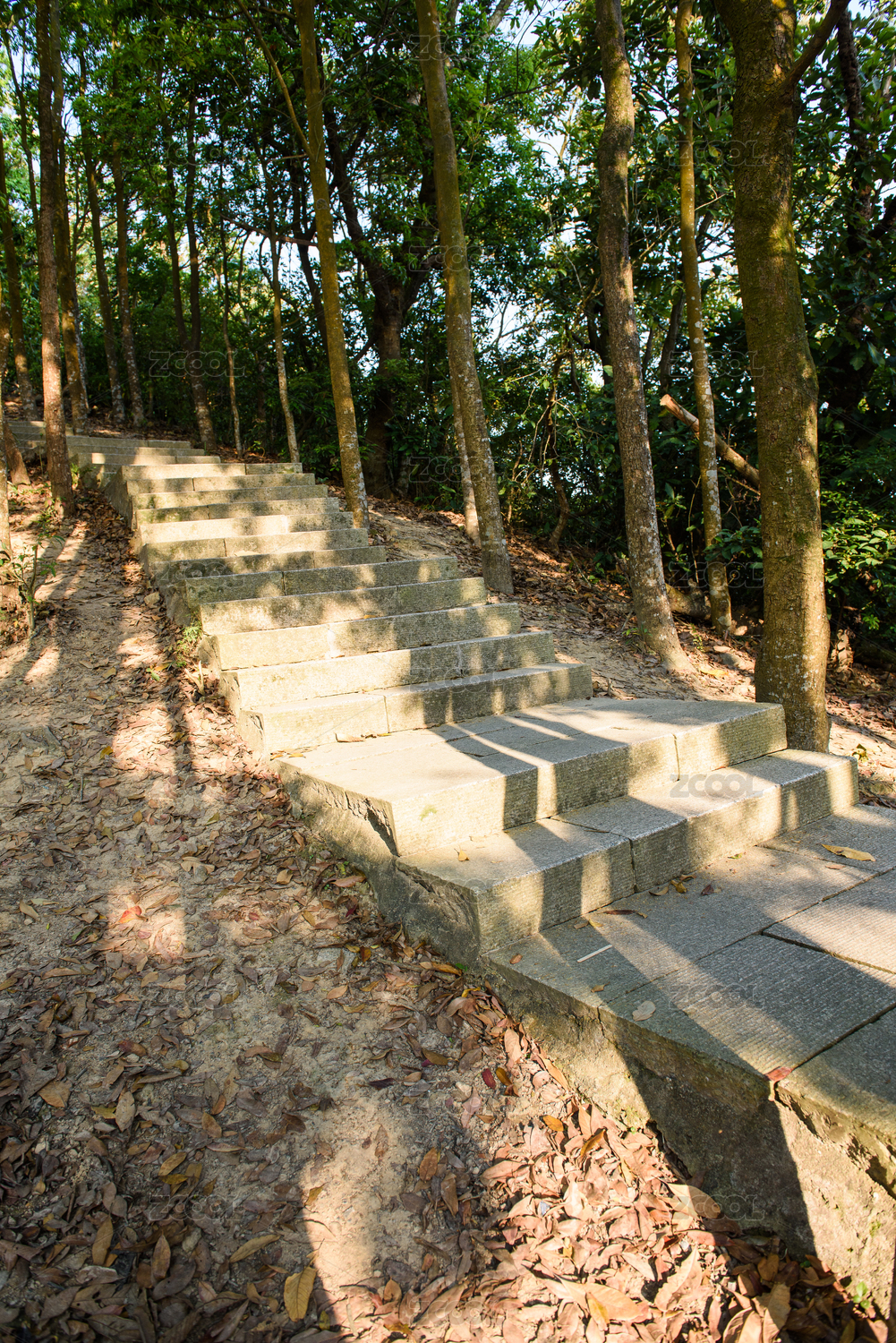 中国深圳梧桐山,蜿蜒曲折的上山石阶
