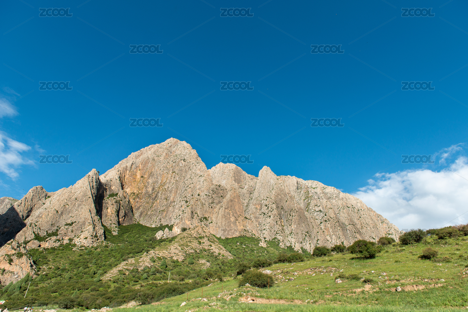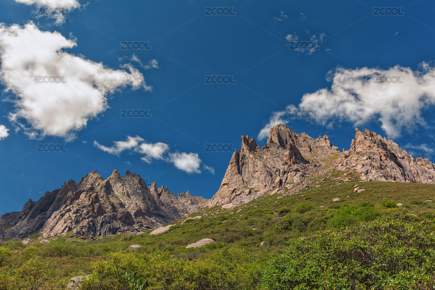 甘南洛克之路蓝天白云怪石嶙峋石头山峰