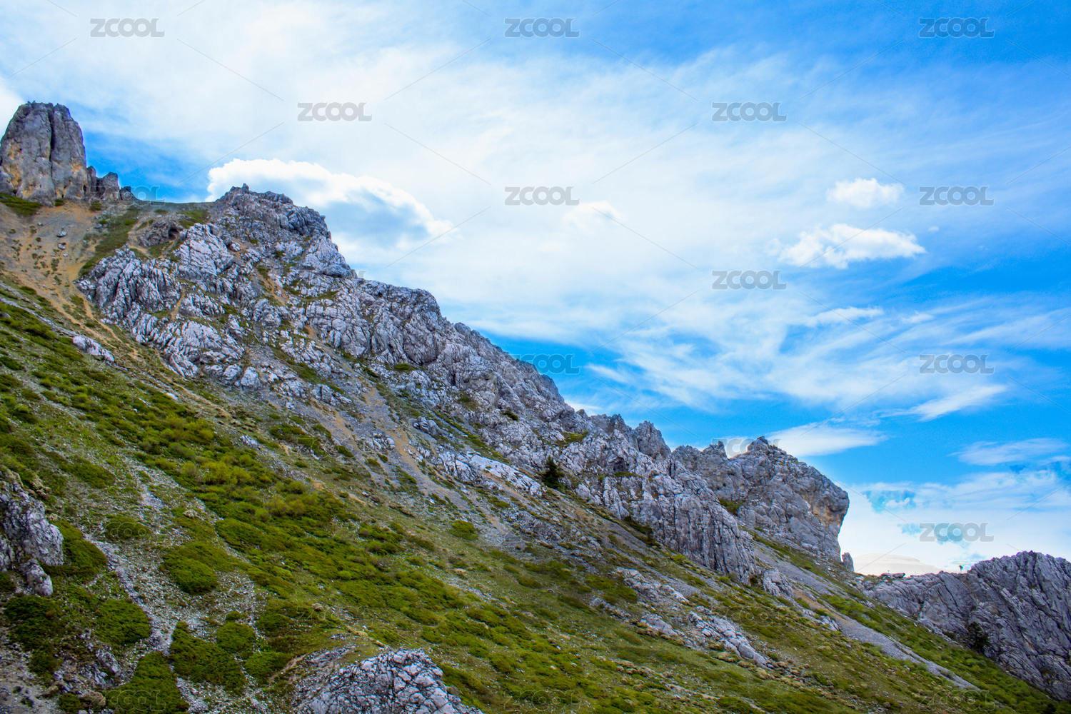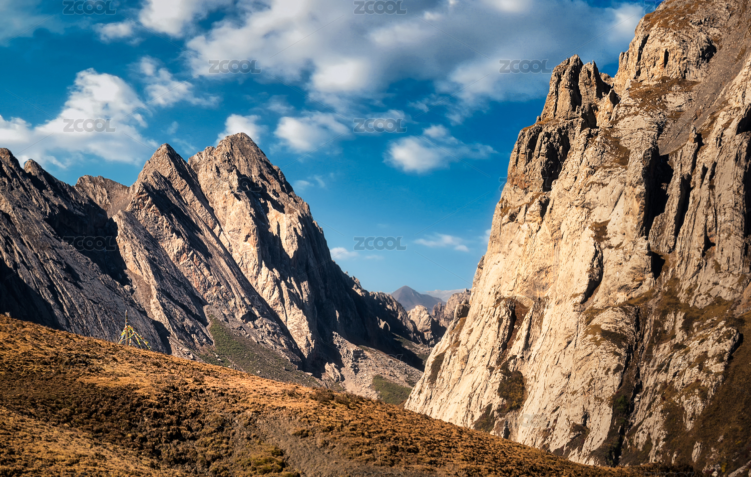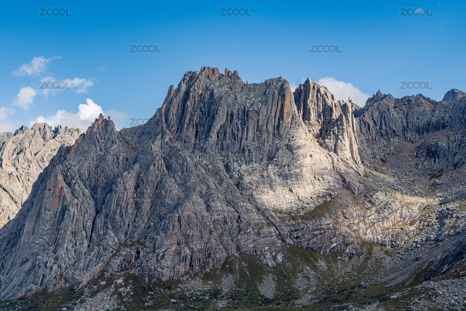 山峰,高山,山体,山谷,峡谷,白石崖,天空,蓝天,白云,蔚蓝