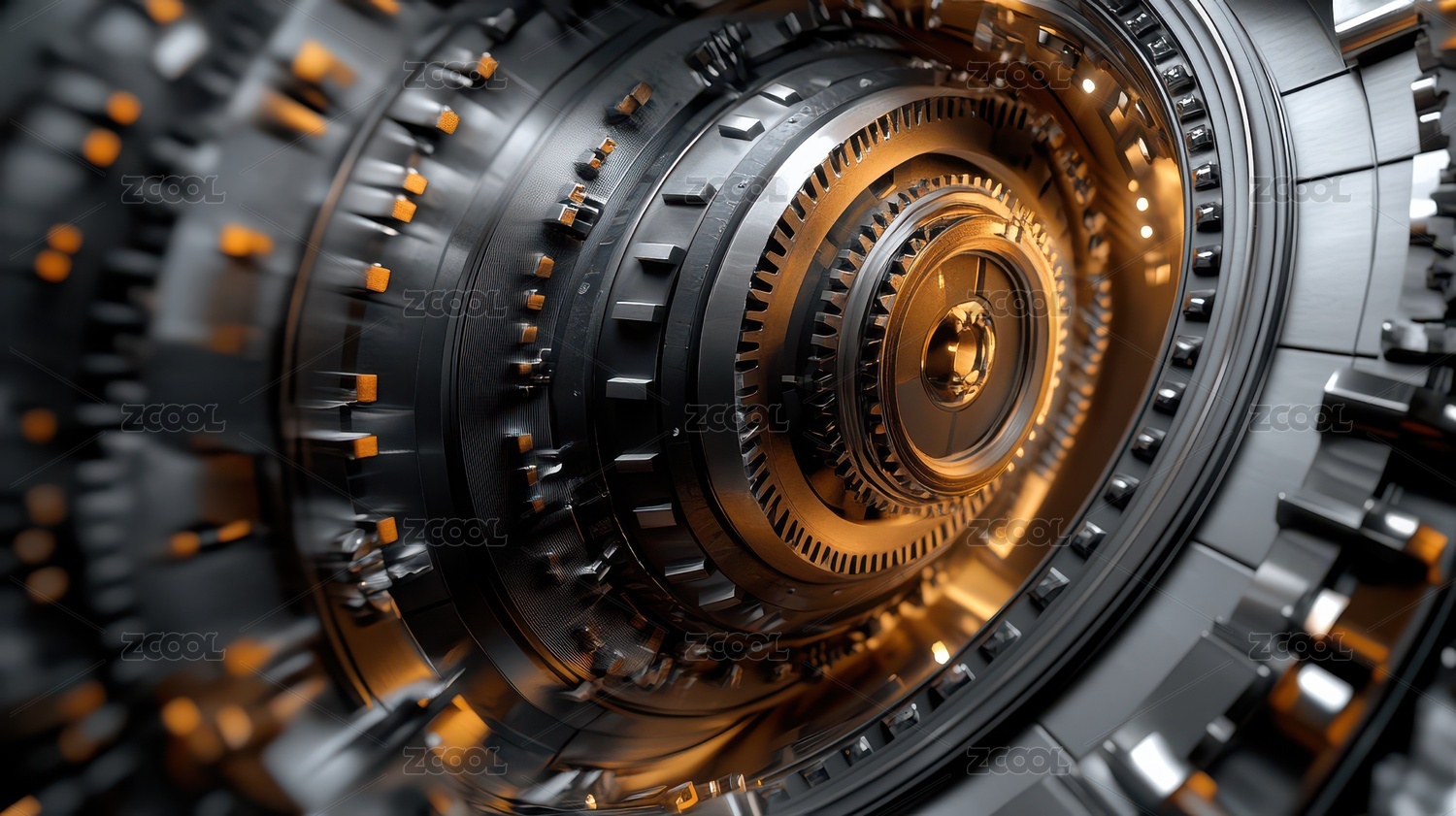 现代工业机械齿轮精密运转,活力蓝黄风格