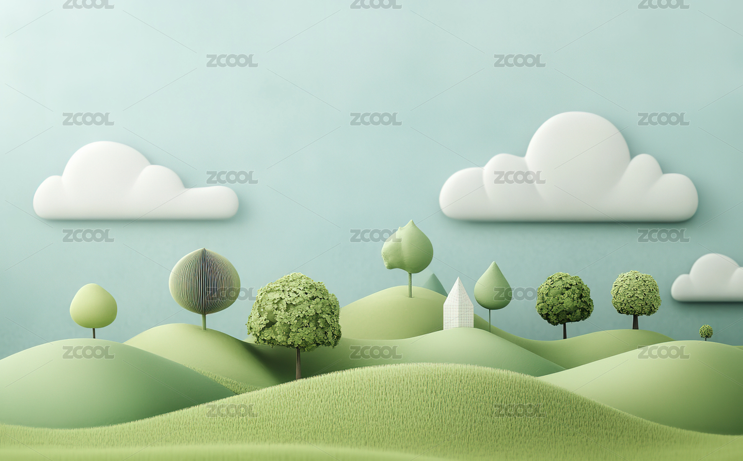 夏天在绿色背景下的蓝色云朵下的蓝色背景