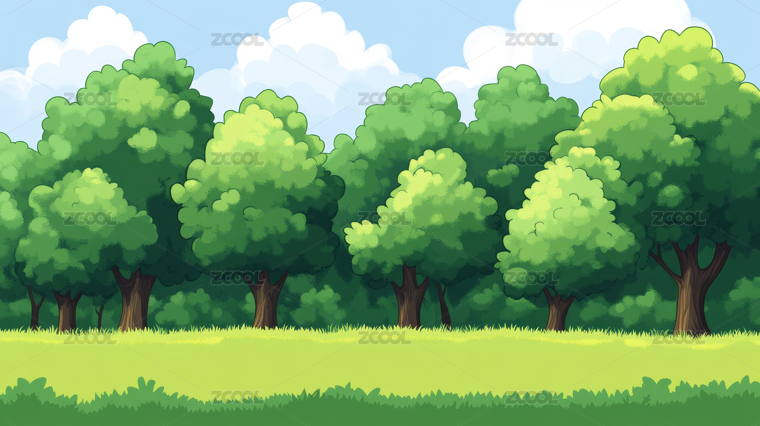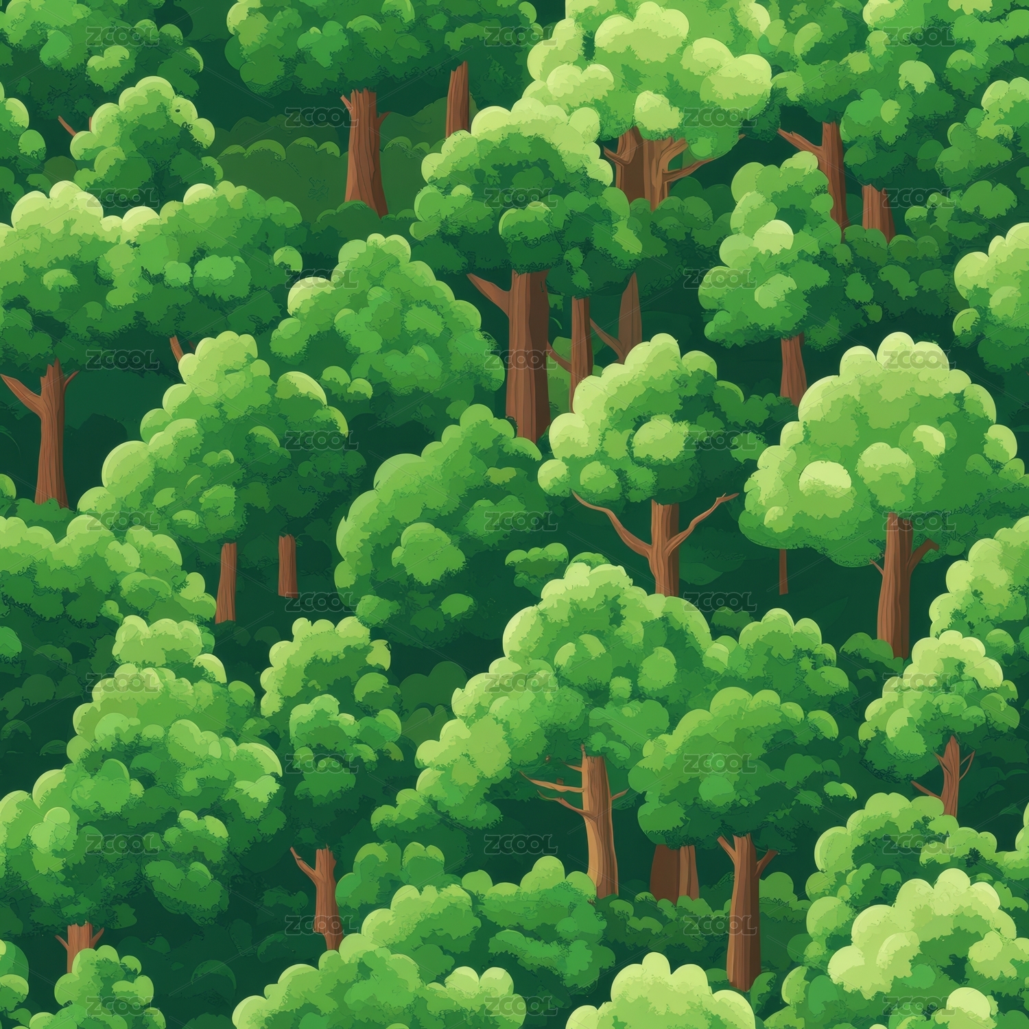 卡通风格的茂密绿色森林