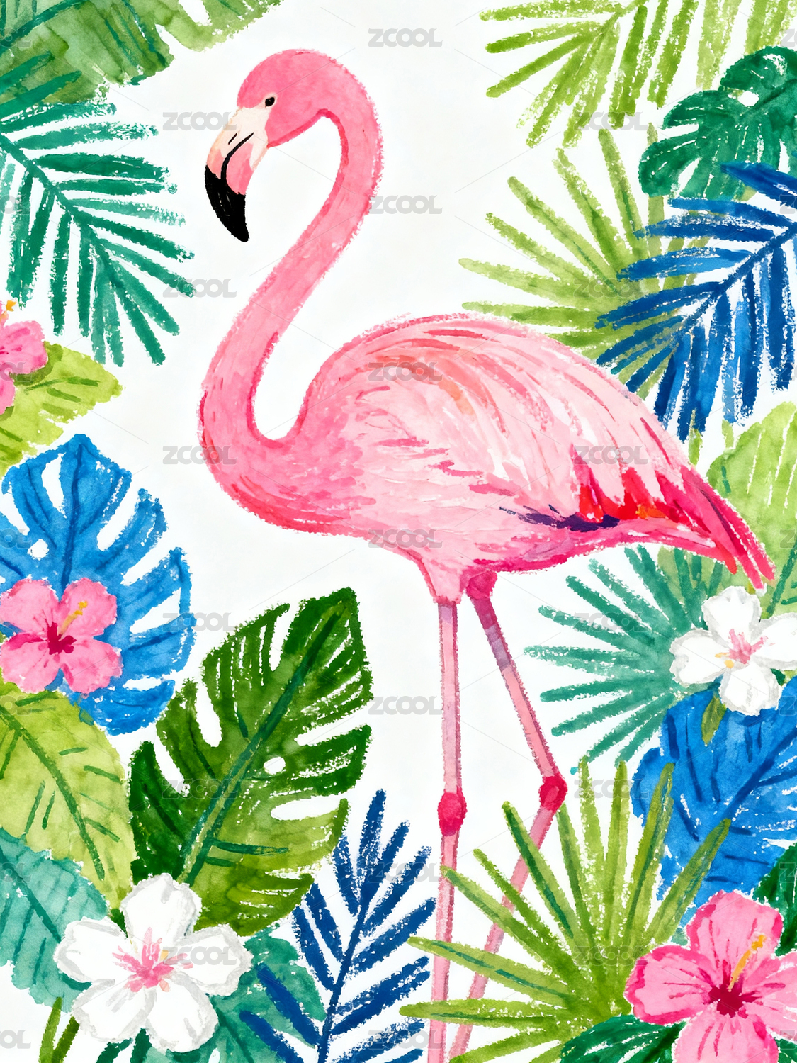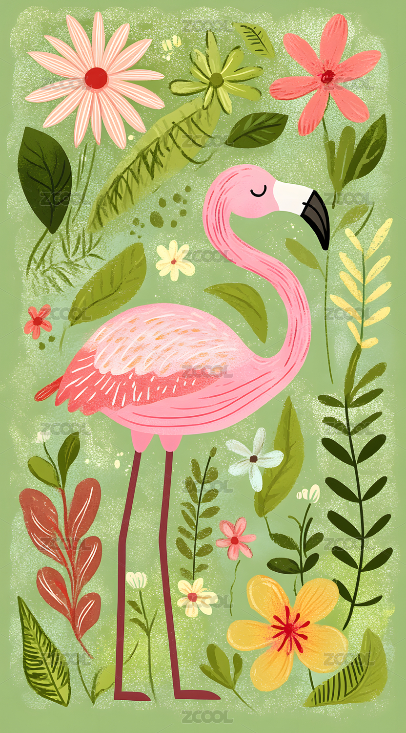 火烈鸟热带植物插画