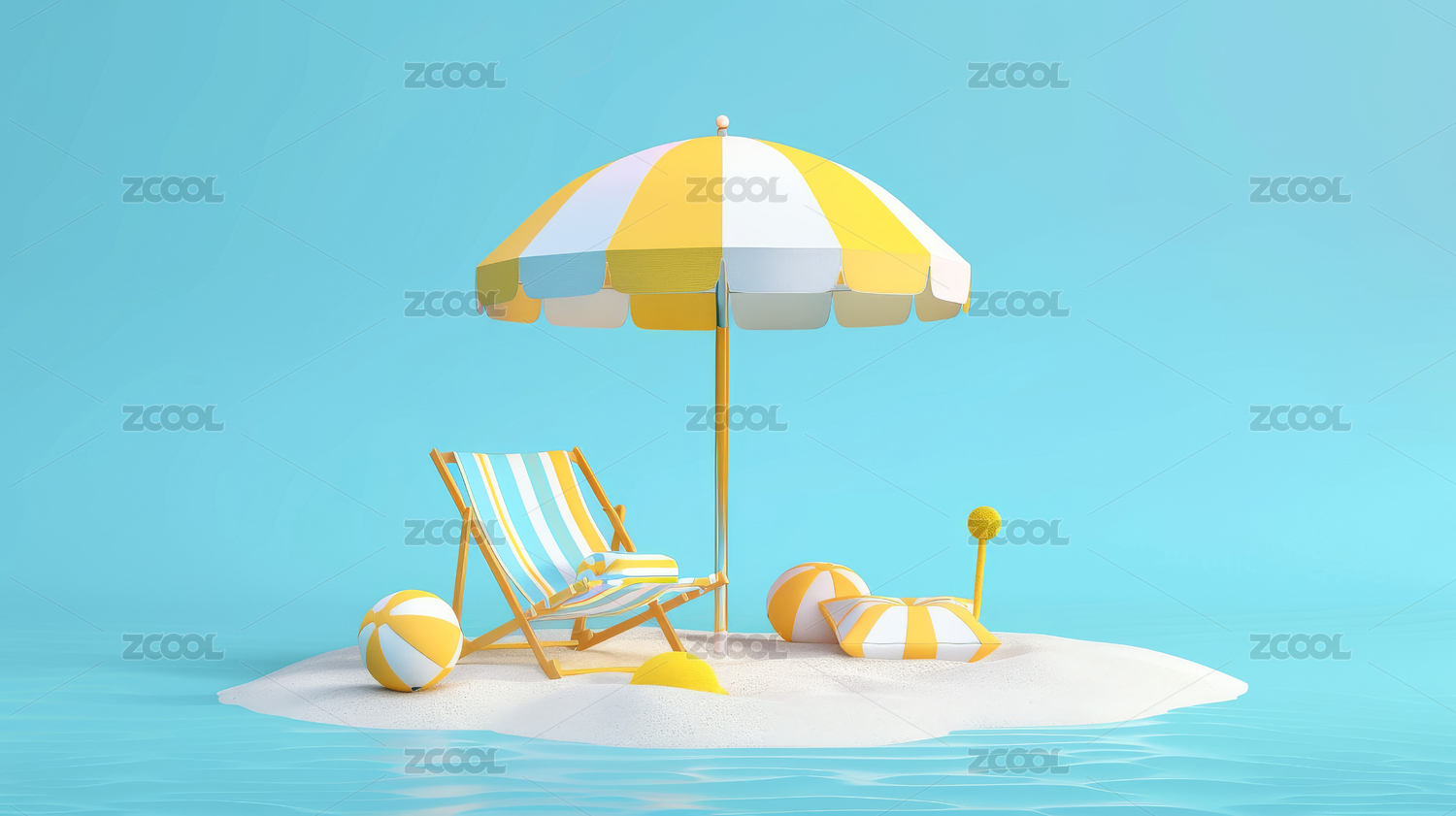 夏日卡通休闲度假3D渲染