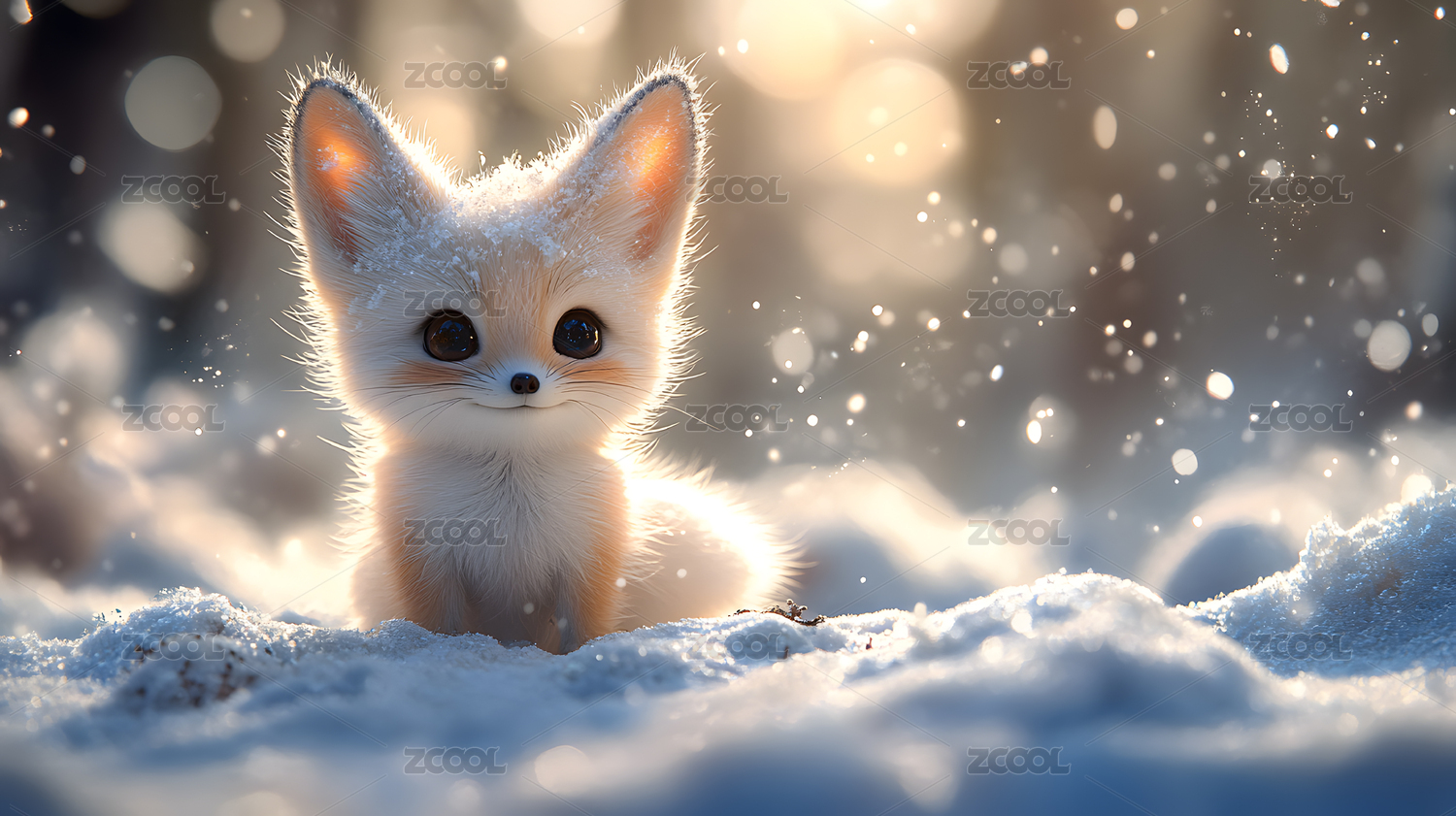 雪地里的小狐狸冬日暖阳