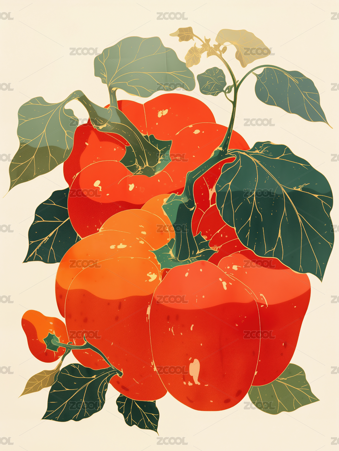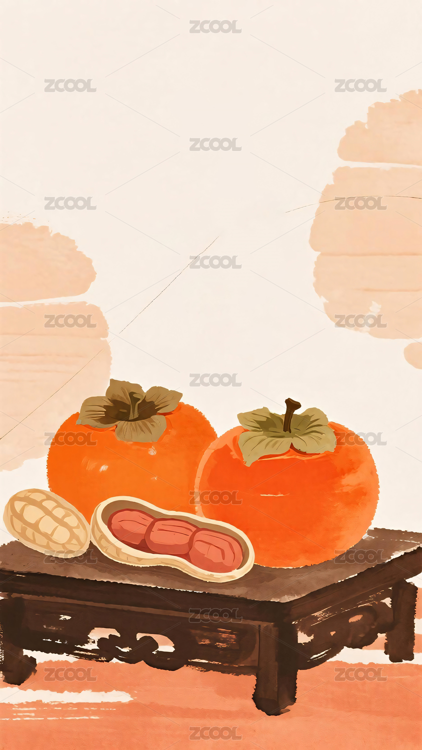 海报,插画,板绘,柿子,如意,秋天,吉祥