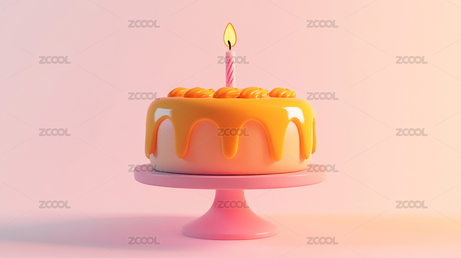 彩色背景下点燃蜡烛的生日蛋糕特写镜头
