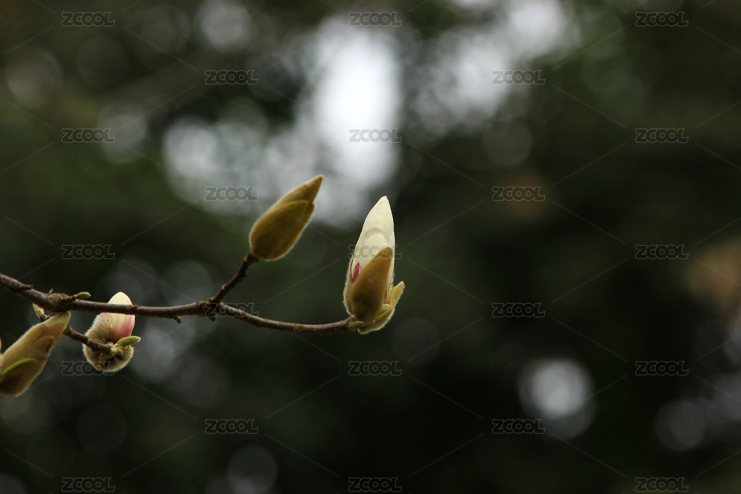 逆光下长焦拍摄的白色广玉兰花朵花枝特写
