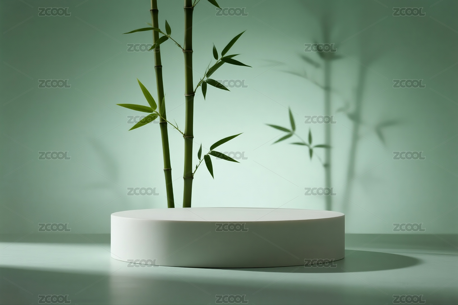 绿色竹子与展示台3D渲染
