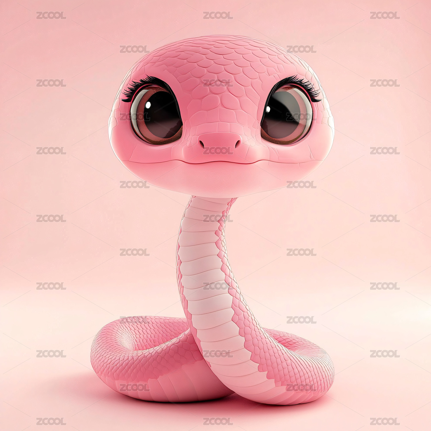 可爱卡通蛇年动物形象的吉祥物3D插画