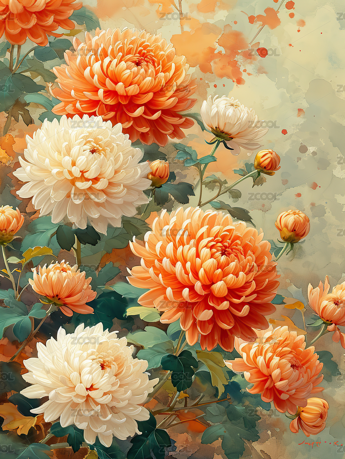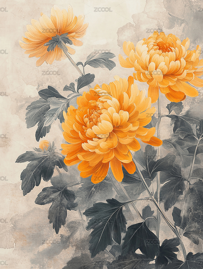 盛开的菊花,水彩风格