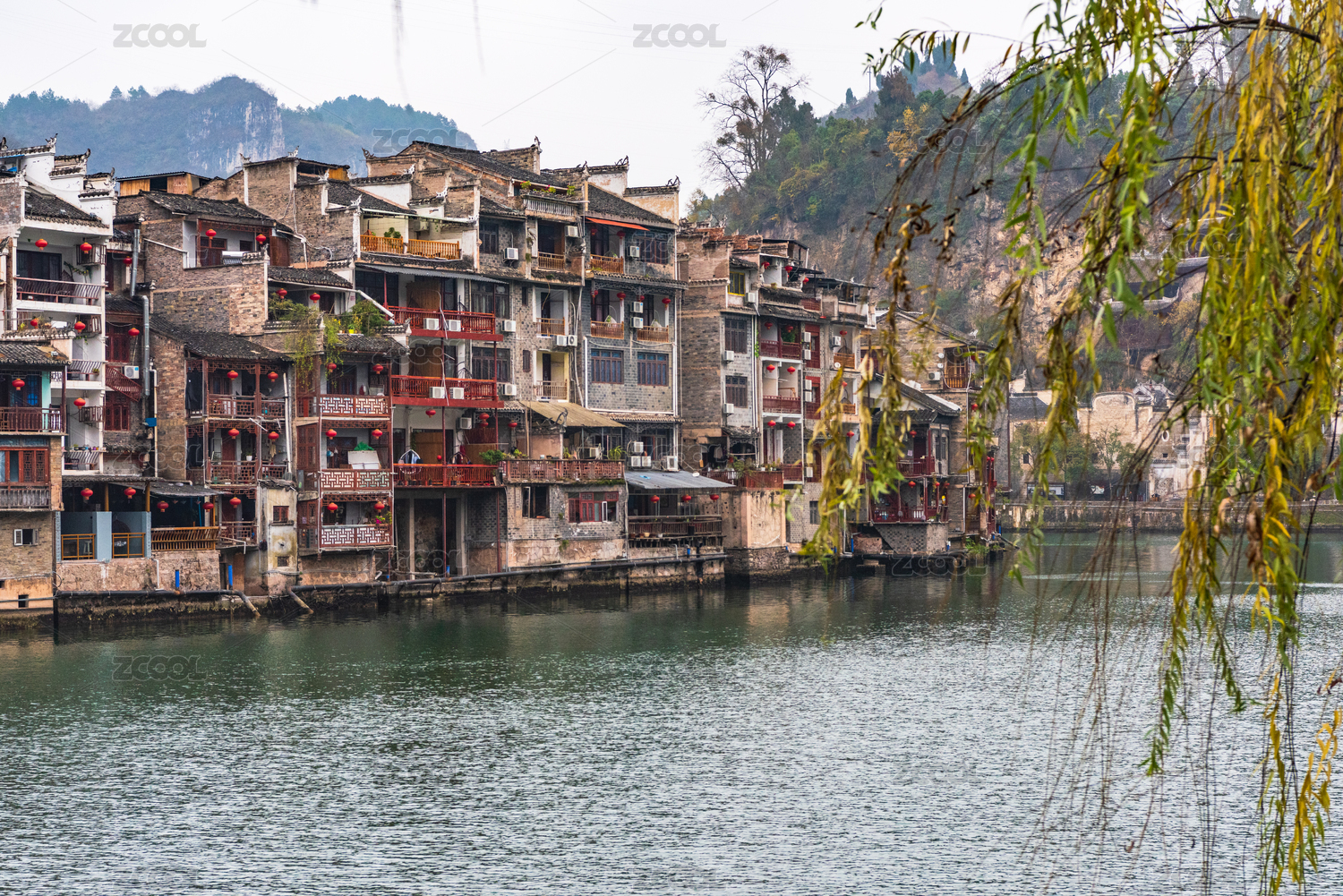 中国贵州黔东南镇远古镇冬日夕阳风光