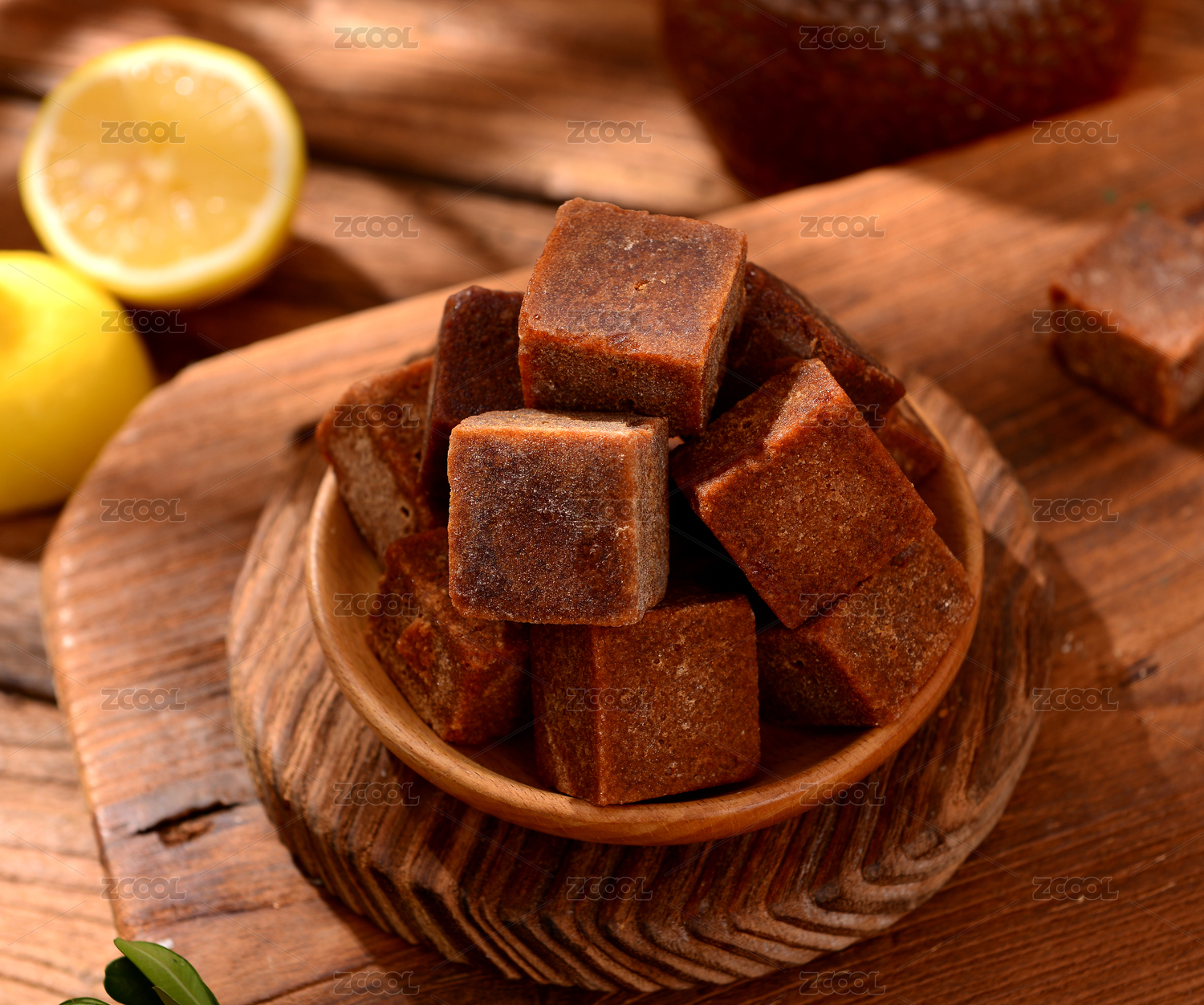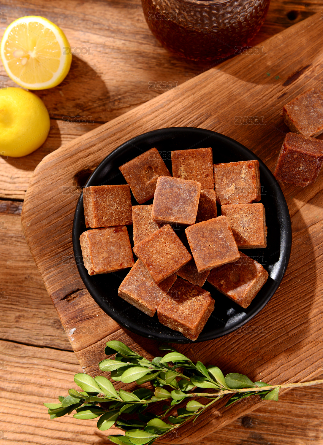 桌面上的木纹盘子里的美味可口的酵素山楂