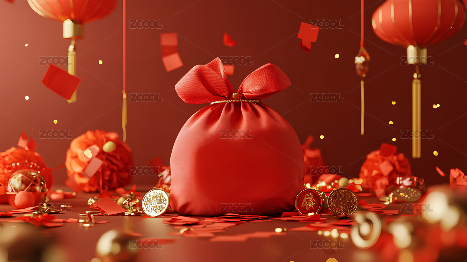 新年红色系礼包红包场景图