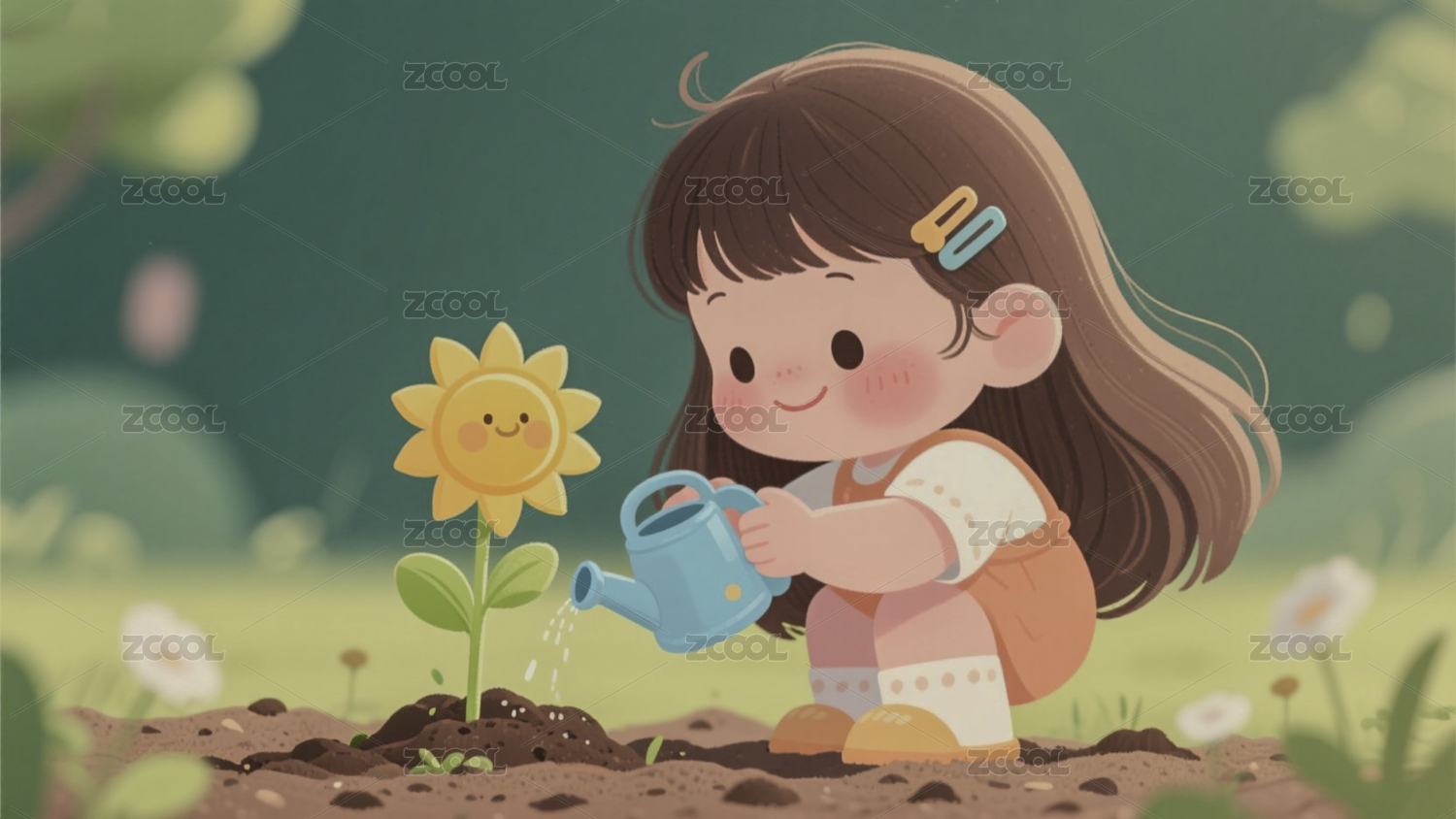 田园园艺浇花插画