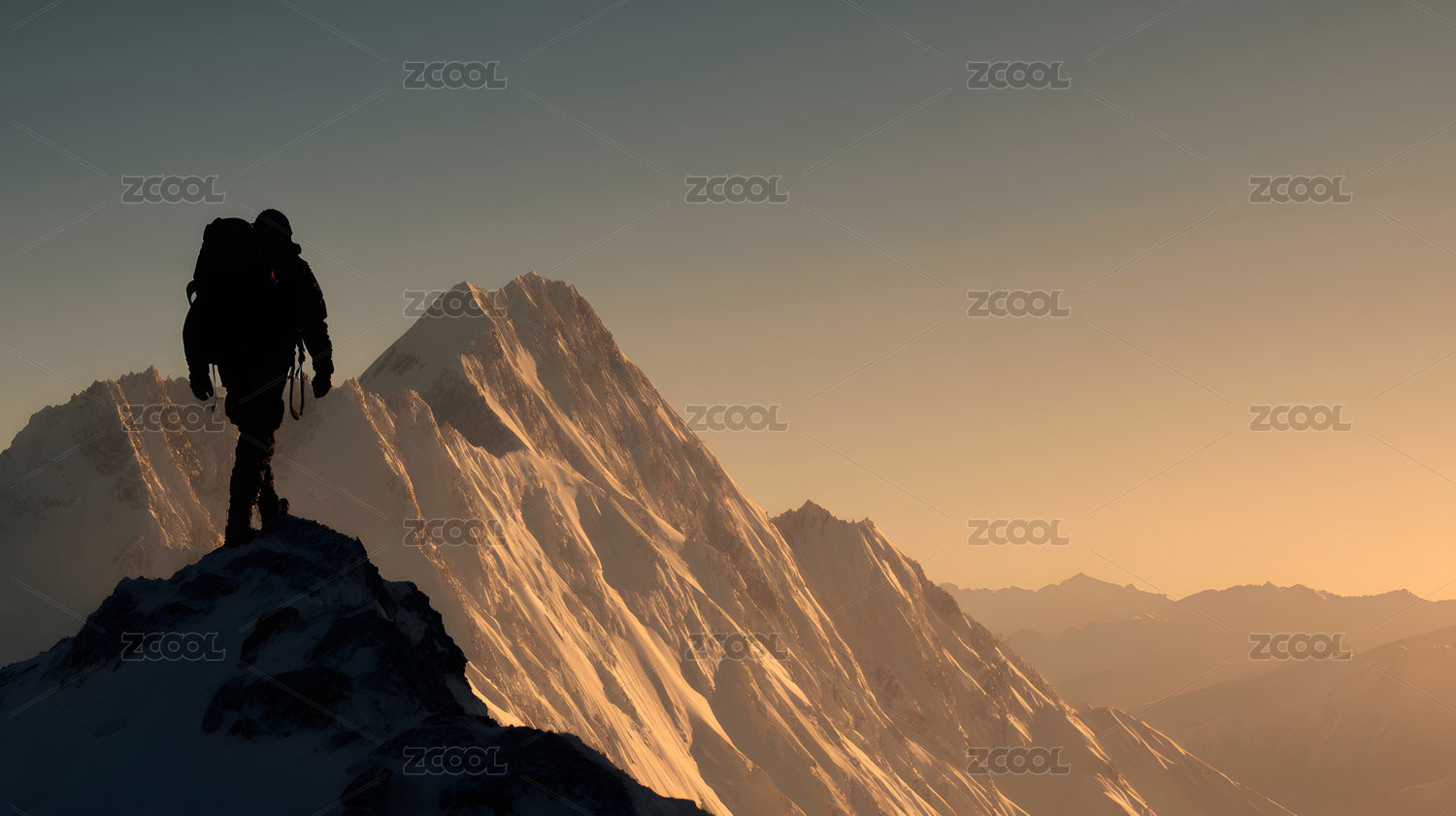 登山,日出,雪山,探险,旅程,云海,山峰,风景,户外,运动