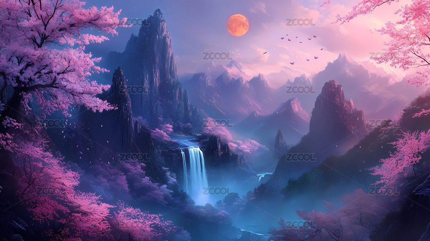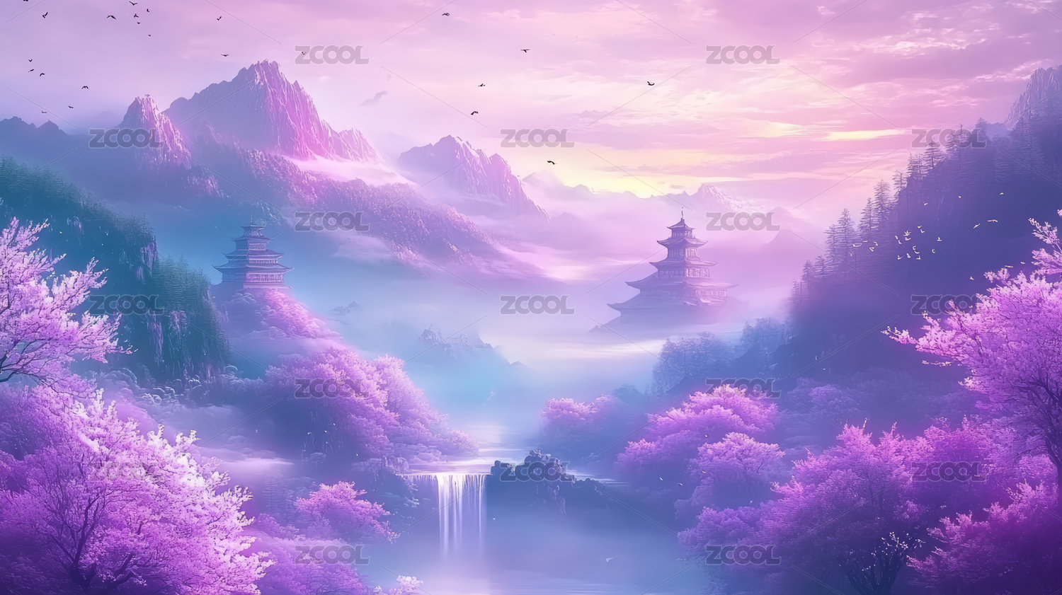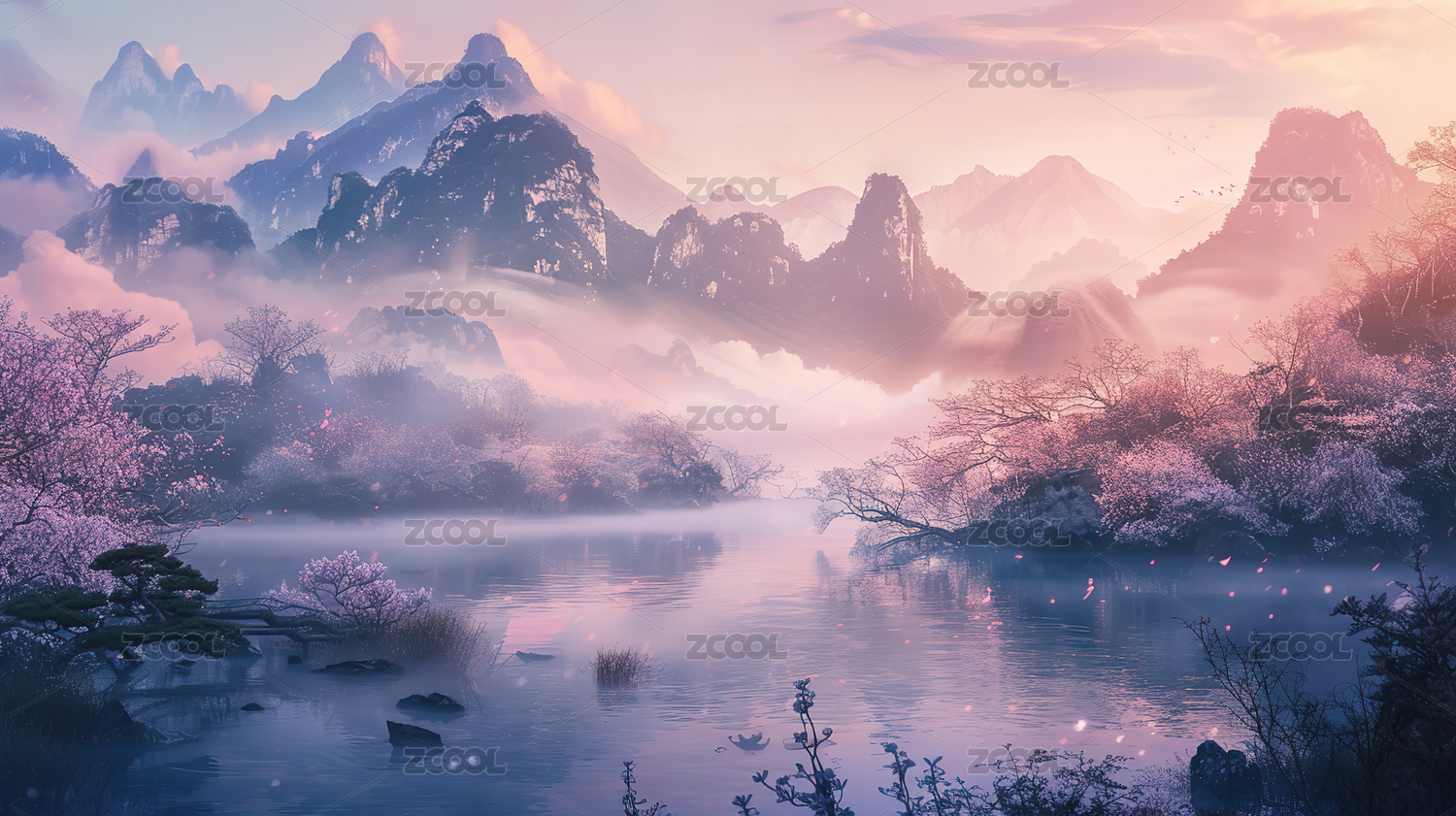 自然,艺术,宁静,唯美,风景,意境,远山,蓝色,壁纸,清新