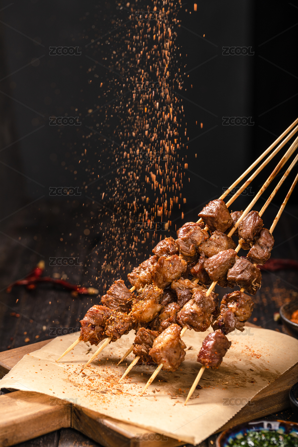 满是烟火气的烤炉上的鲜羊肉新疆红柳大串