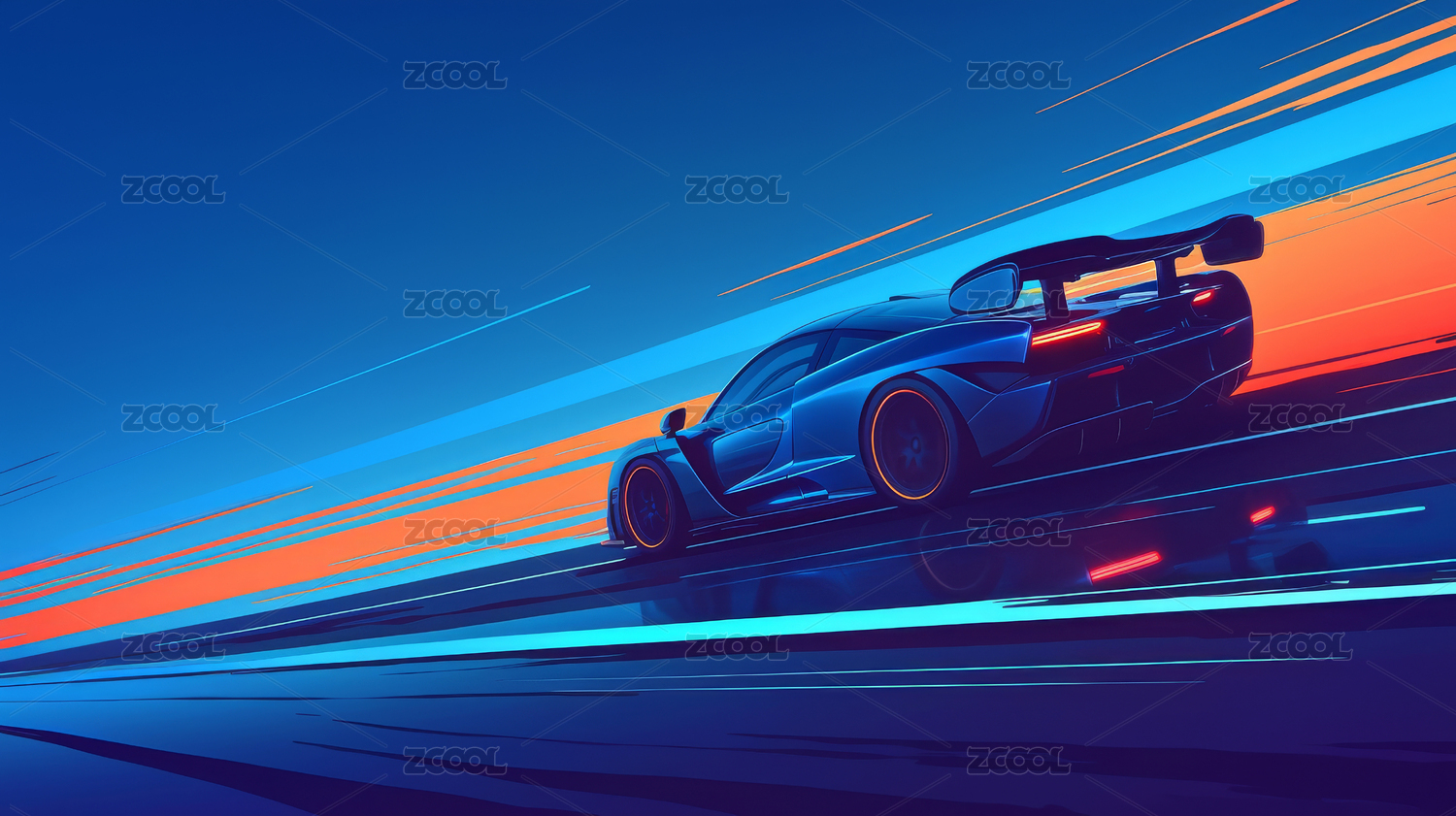 潮流,渐变,插画,炫彩,Y2K,未来,蓝紫色,光线,汽车,概念