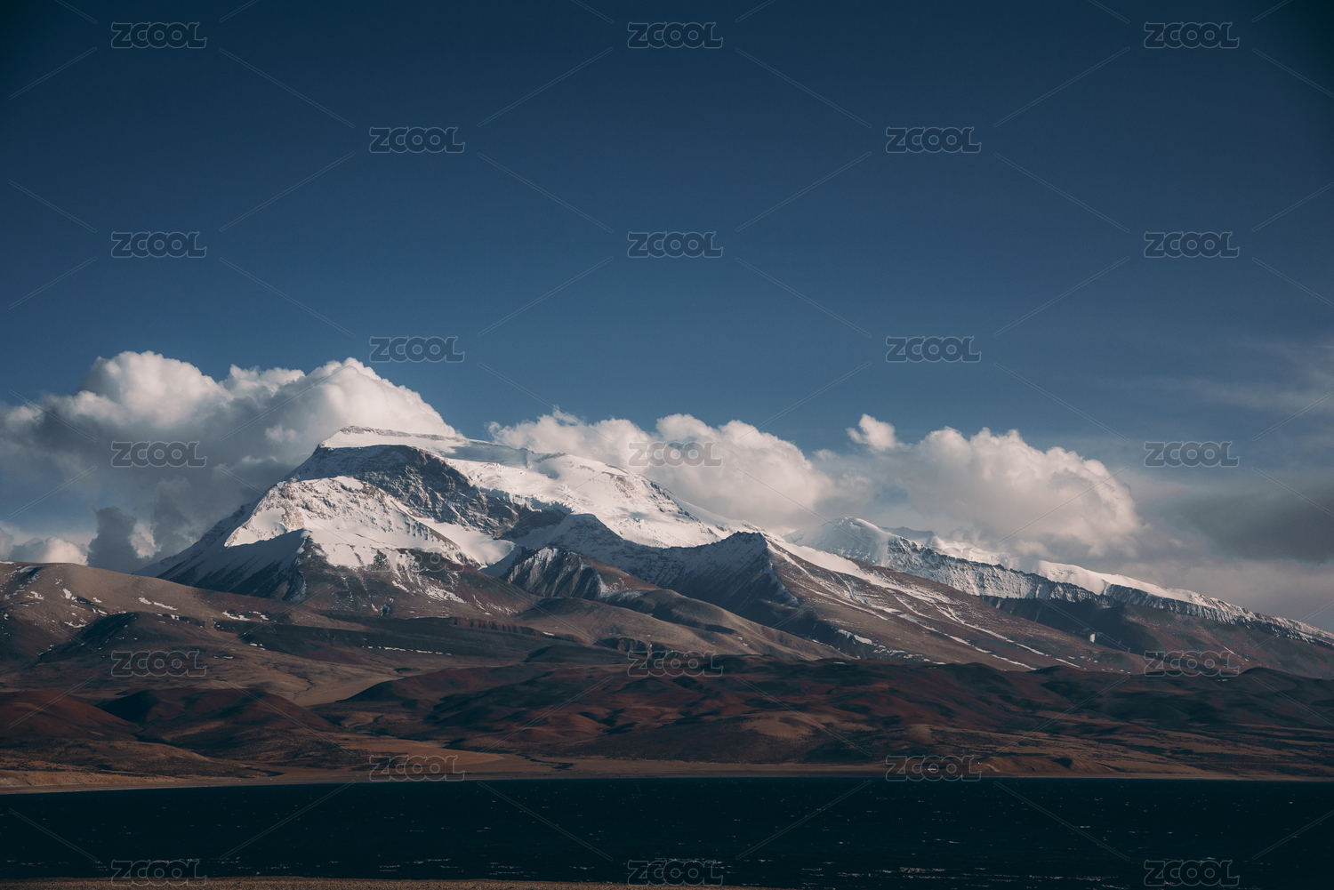 晴天,西藏,阿里地区,雪山,山,蓝天,纳木那尼峰,蓝色,黄色,云