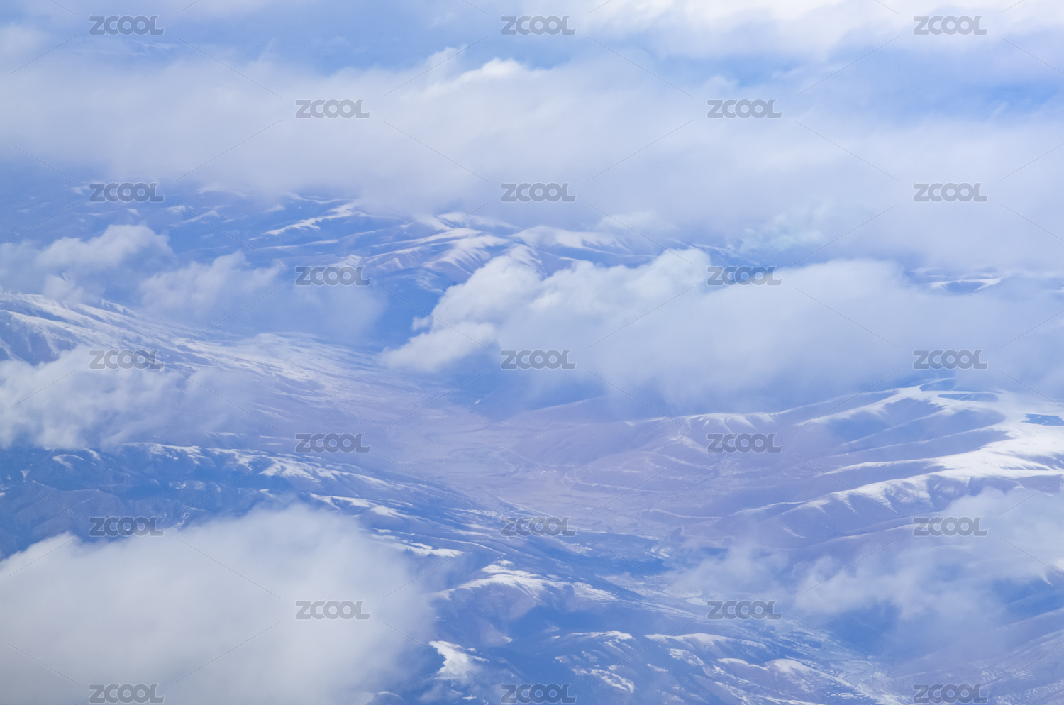 飞机窗外青藏高原连绵群山雪山云海风光
